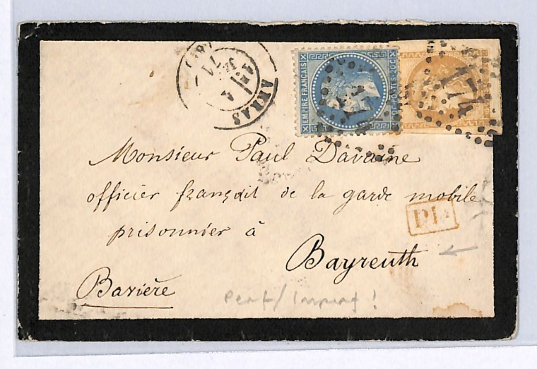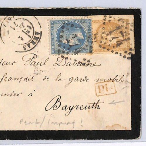 FRANCE Classic Cover 20c NAPOLEON Perf 10c CERES Imperf Arras 1871 Bayreuth WZ86
