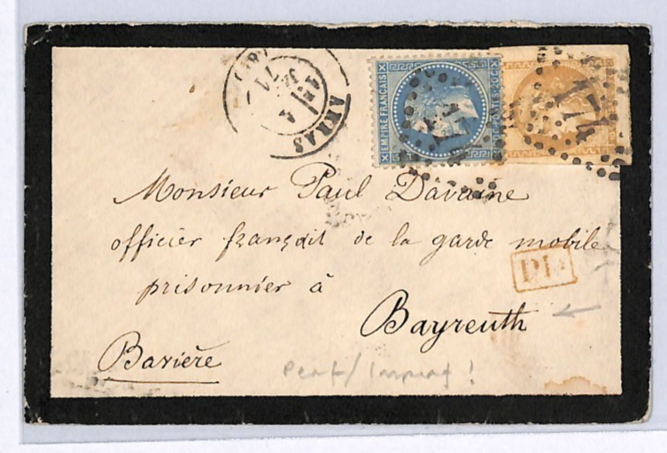 FRANCE Classic Cover *IMPERF & PERF* MIXED FRANKING Arras 1871 Bayreuth WZ86