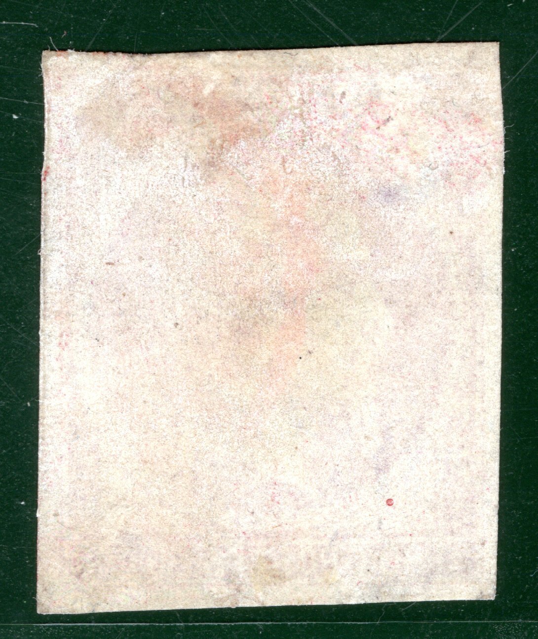 LOVELY CLEAR PROFILE example. RARE RED CANCELLATION on IMPERFORATE issue. FOUR MARGINS. Very Fine for an item of this type & period. Please look at all the scans to help form your own opinion.