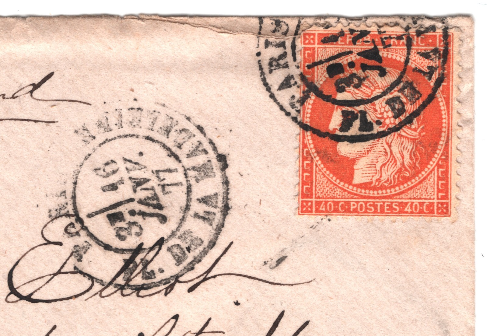 FRANCE Classic TRANSATLANTIC 40c CERES Cover *CDS* 1877 Paris-NYC via GB WZ37