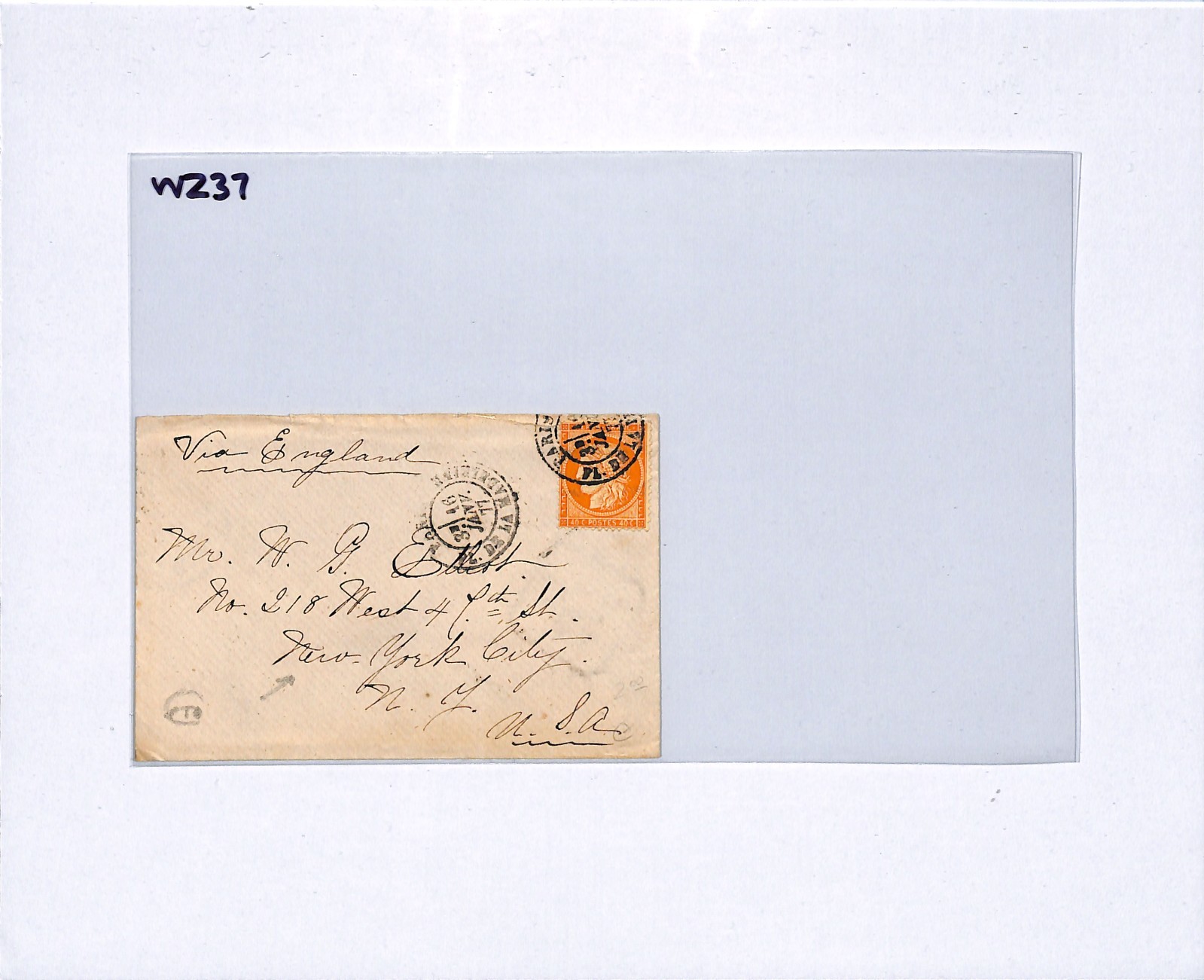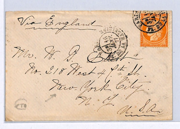 FRANCE Classic Cover Paris TRANSATLANTIC USA New York via GB 1877{samwells}WZ37
