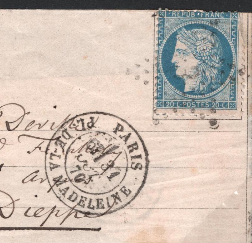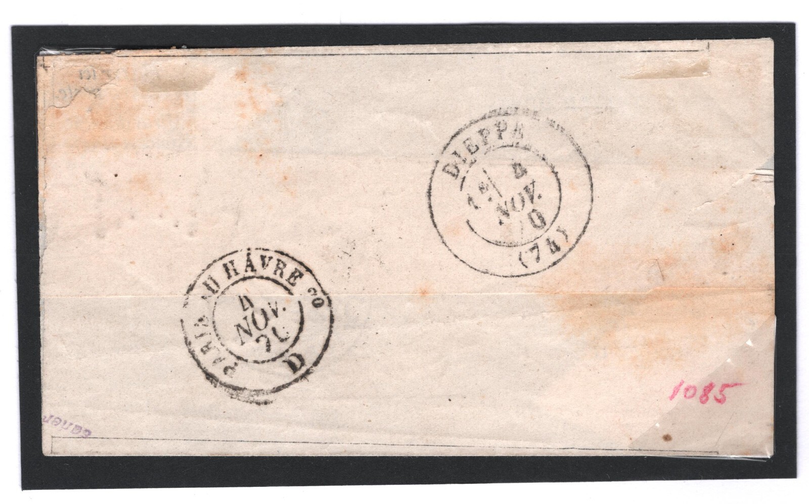 FRANCE Cover *PAR BALLON MONTE* 1870 PARIS SIEGE Air Mail Dieppe Z05b