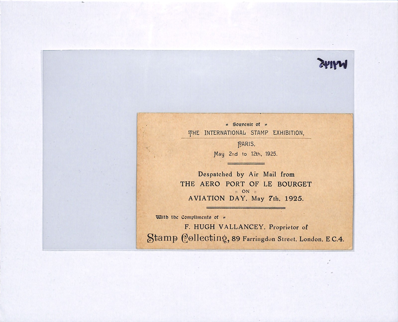 SCARCE VALLANCEY POSTCARD produced for the AVIATION DAY FLIGHT Le Bourget-London. Very Fine for an item of this type & period. Please look at all the scans to help form your own opinion (WAF).
