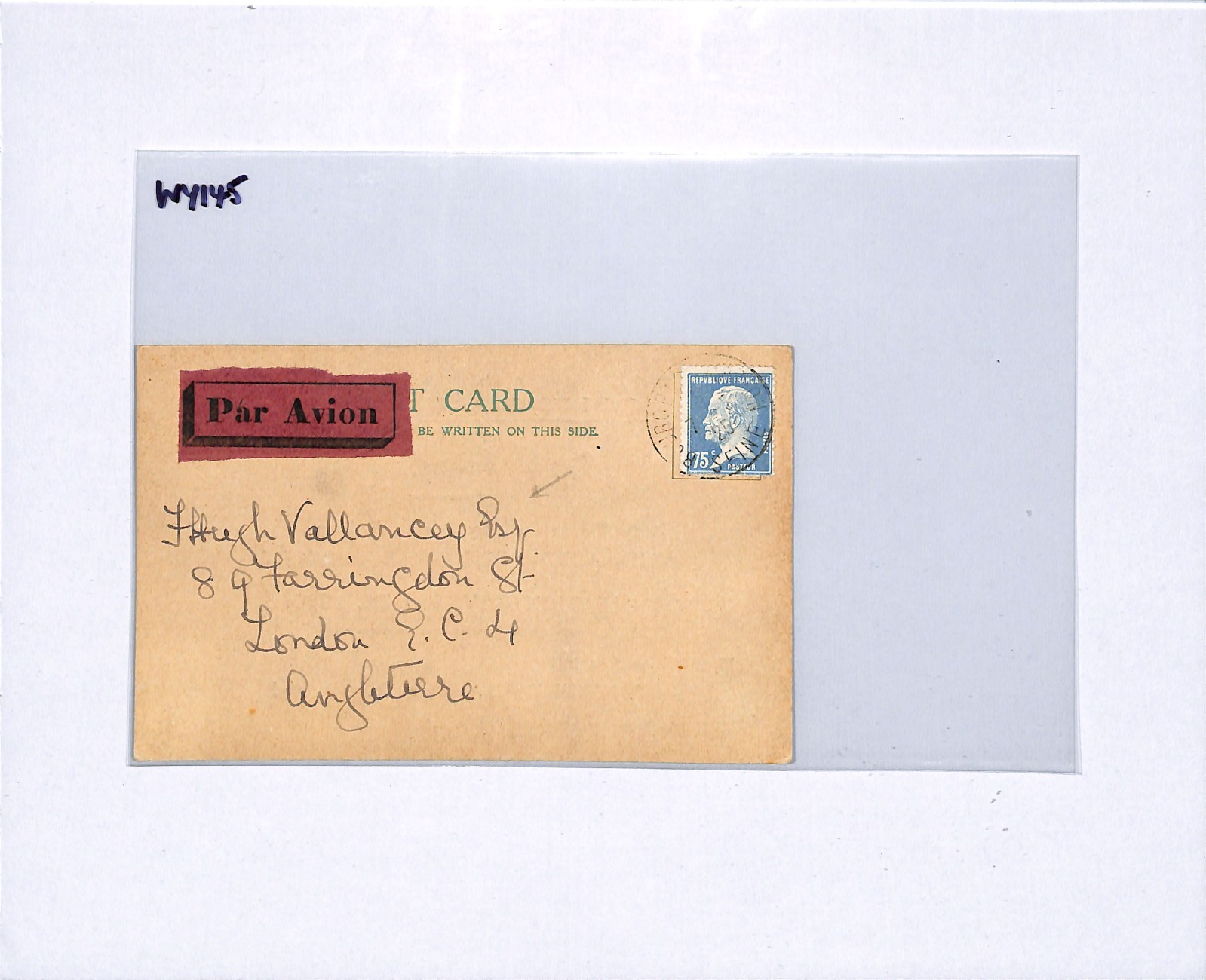 FRANCE-GB Air Mail VALLANCEY Card 1925 STAMP EXHIBITION Paris AVIATION DAY WY145