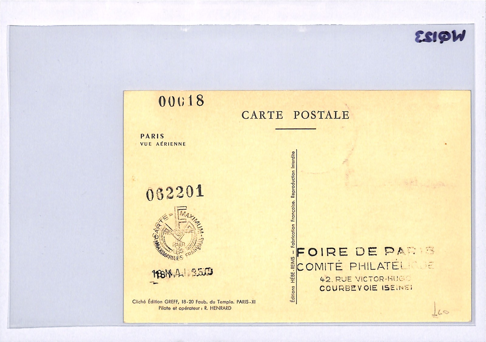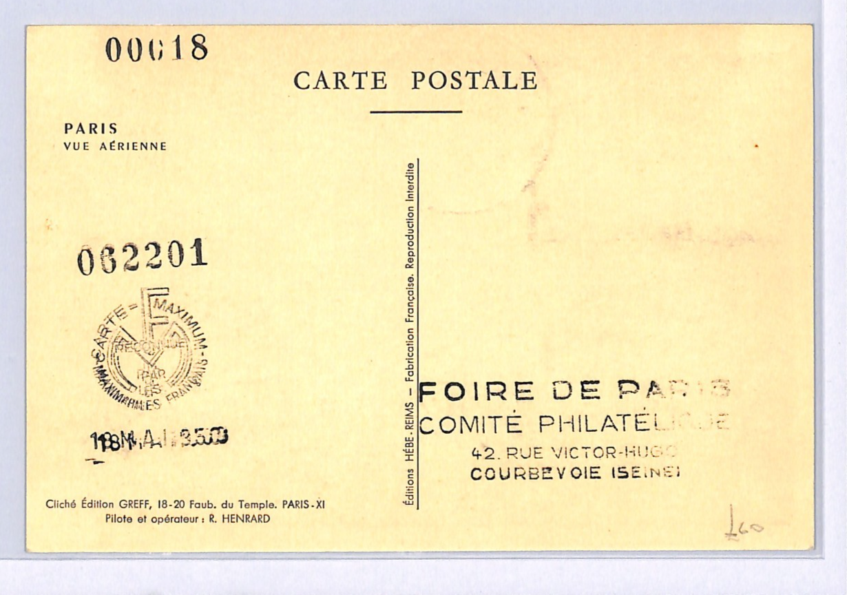 FRANCE MAXI CARD 1000f Postcard *FOIRE DE PARIS* 1950 Air Mail Paris WQ123