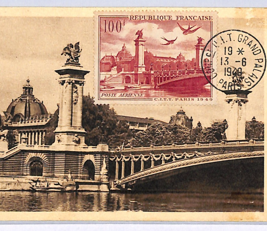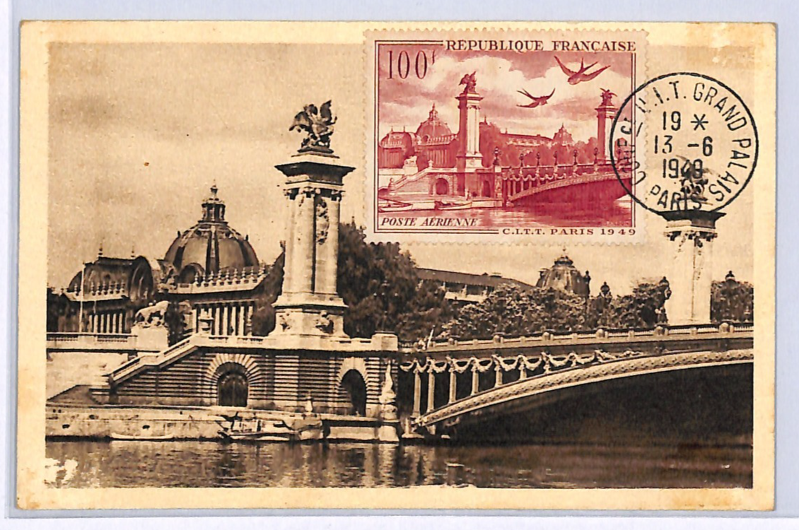 FRANCE MAXI CARD 100f Postcard *PONT ALEXANDRE III* 1948 Air Mail Paris WQ122