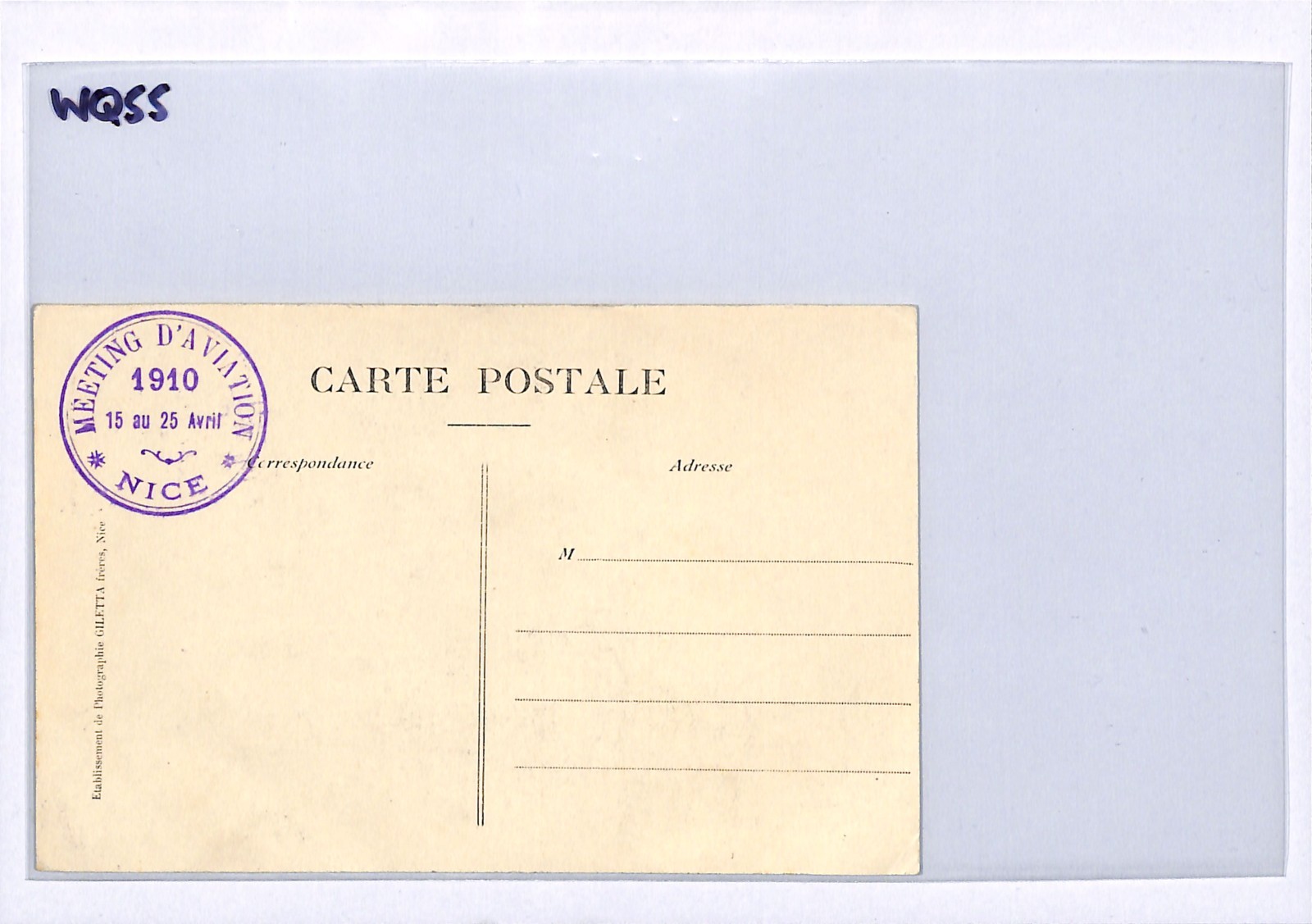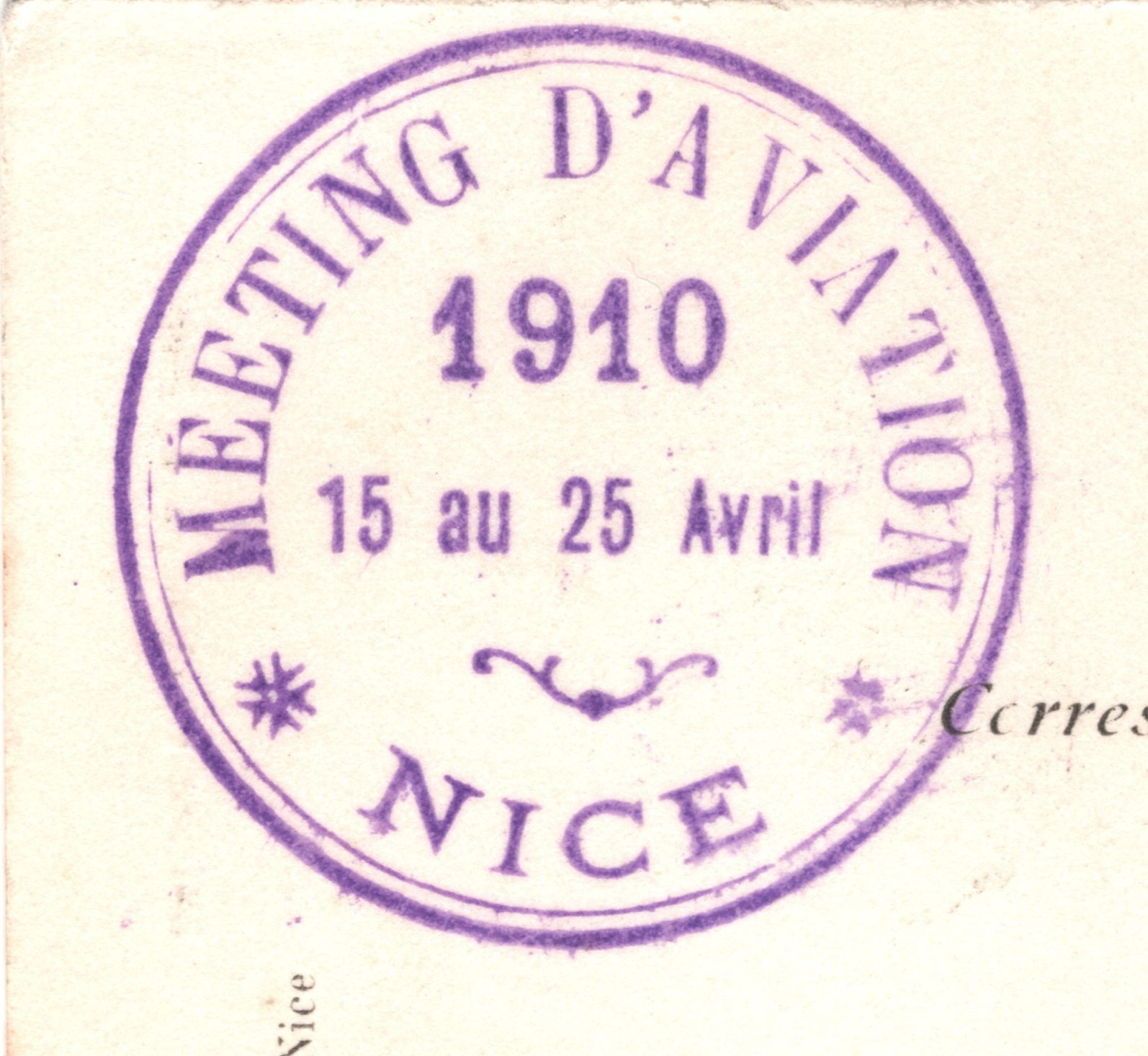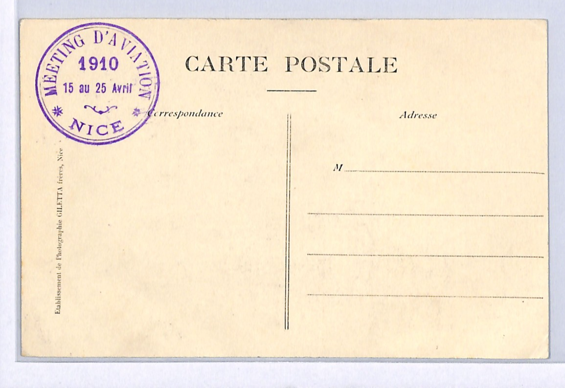 FRANCE PIONEER AVIATION Card *AIR MEETING NICE* 1910 Super Violet CACHET WQ55