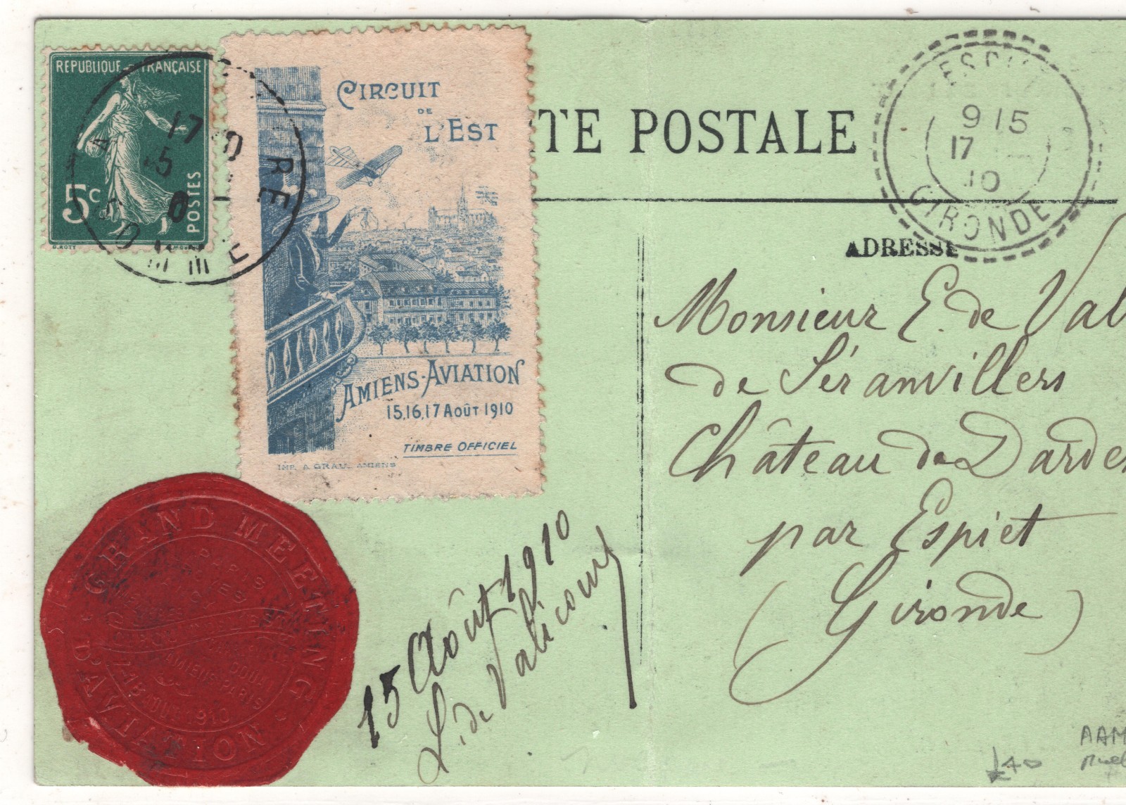FRANCE PIONEER AVIATION Postcard CIRCUIT DE L'EST Label Amiens Espiet 1910 XF265