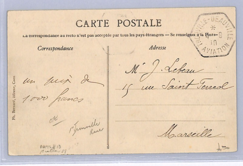 FRANCE PIONEER AVIATION Postcard Trouville-Deauville Meeting 1910 XF266