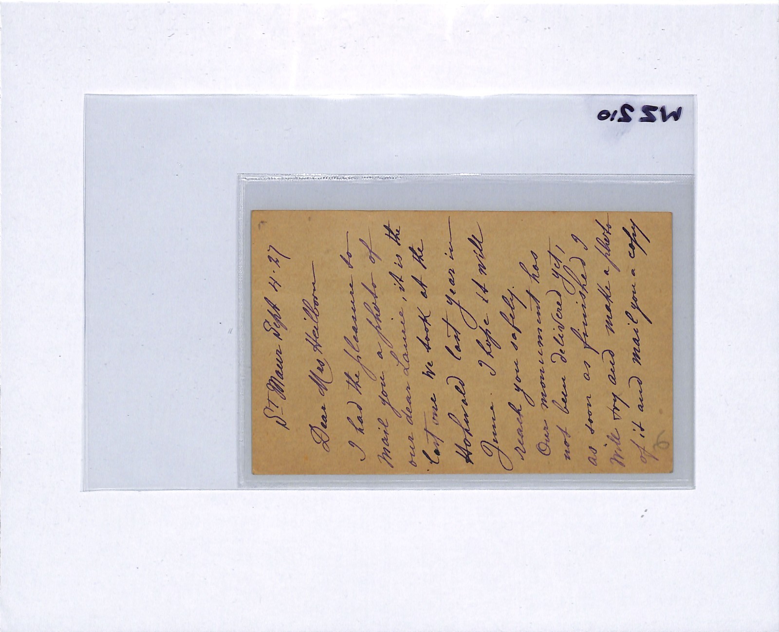 "Very pleased with the letter, prompt shipment, and packaging to prevent damage."