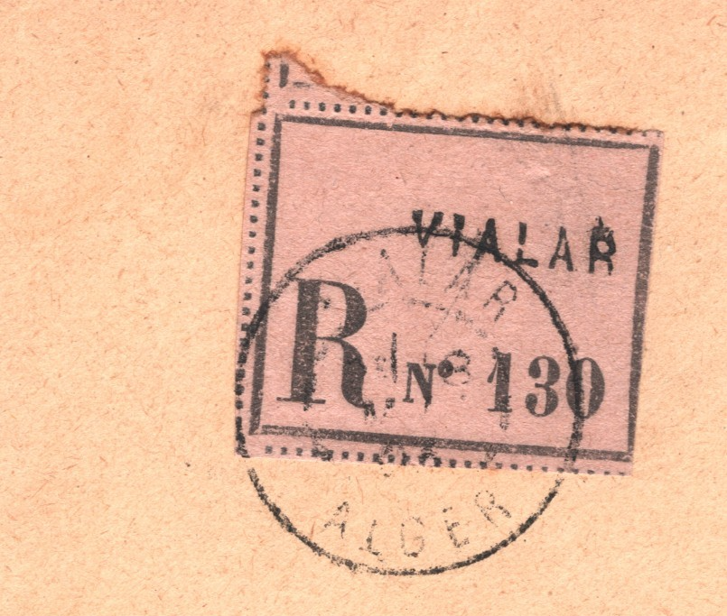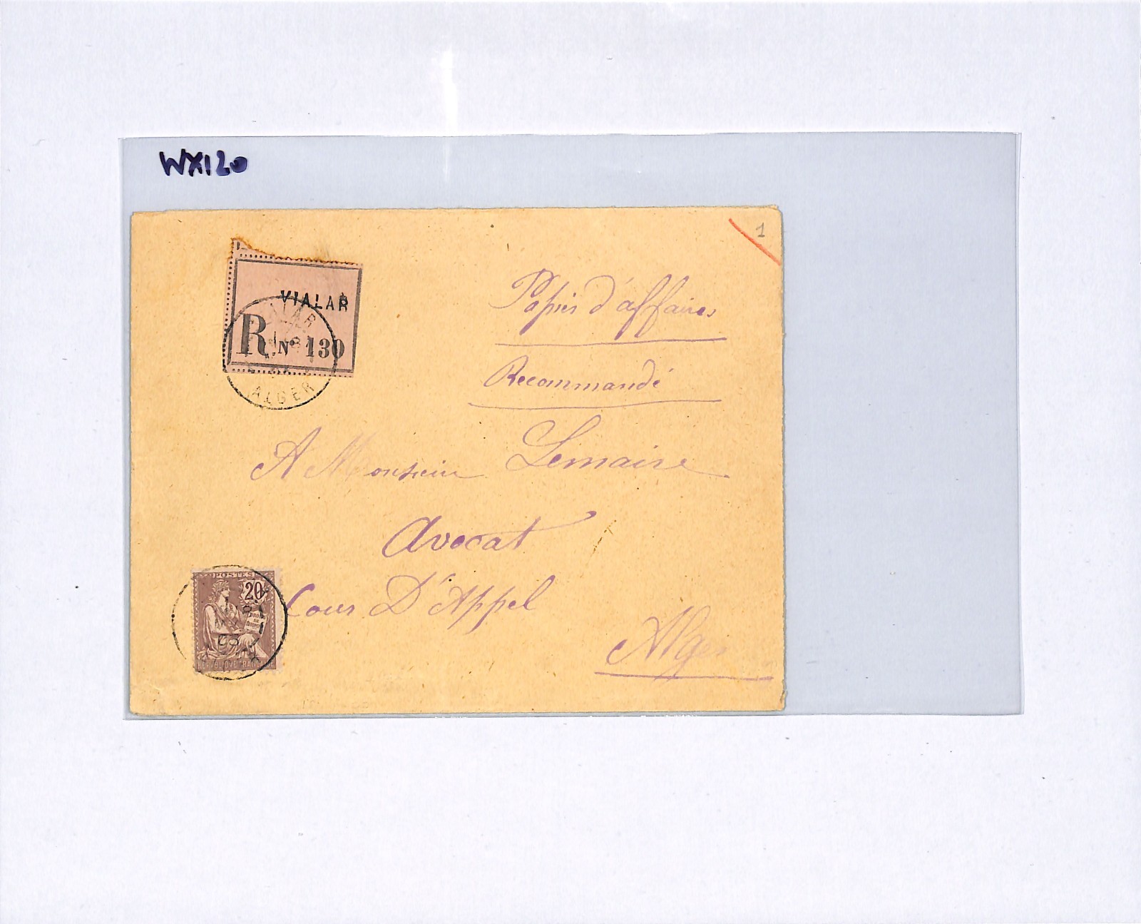 FRANCE USED ABROAD ALGERIA Cover 20c RIGHTS *Vialar* 1903 CDS Registered WX120