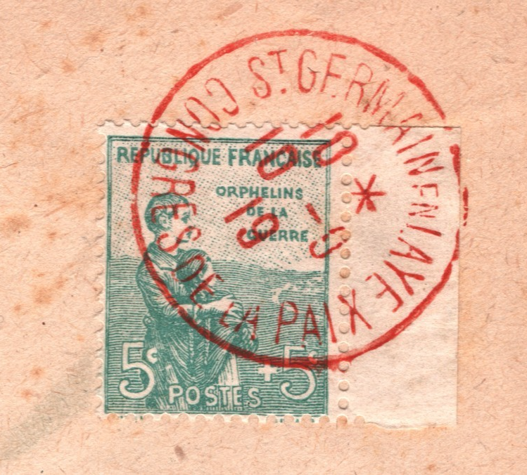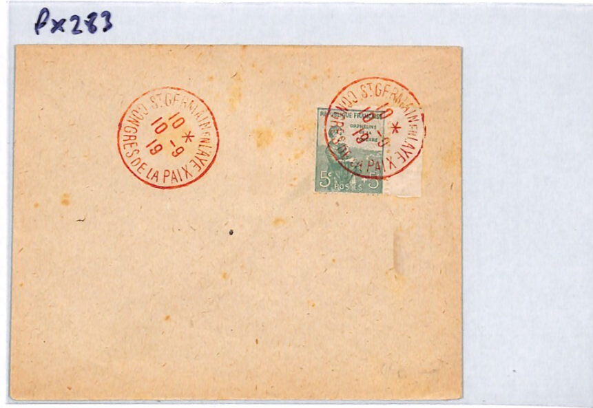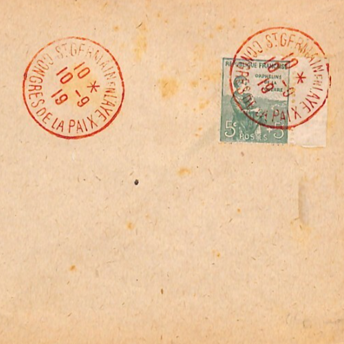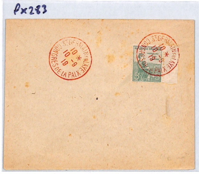 FRANCE (WW1) PEACE CONFERENCE Cover 1919 RED *CONGRES DE LA PAIX* St Germain CDS PX283