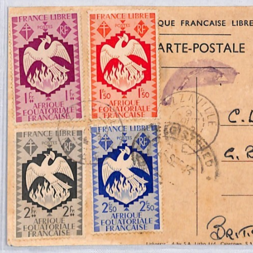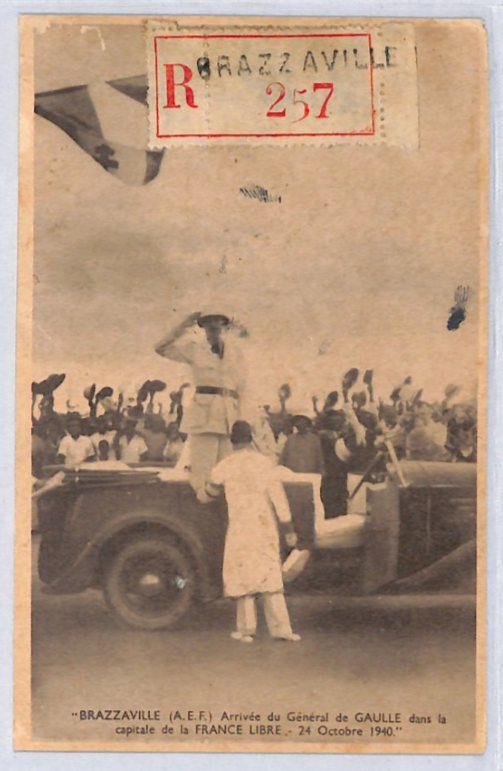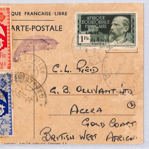 FRENCH CONGO *LIBRE* Reg'd DE GAULLE Postcard WW2 Brazzaville 1943 Accra YF224