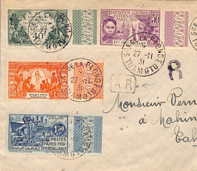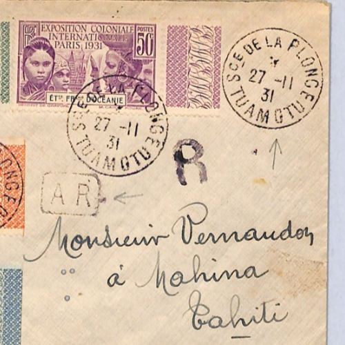 FRENCH POLYNESIA Cover *TUAMOTU* 1931 CDS Tahiti France Cols {samwells}YF183