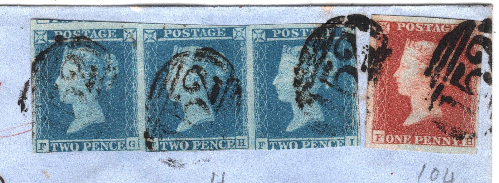 GB Staffs Cover 2d BLUE BLOCK{3} p4 Penny Red p104 Burton Macclesfield 1851 XB2