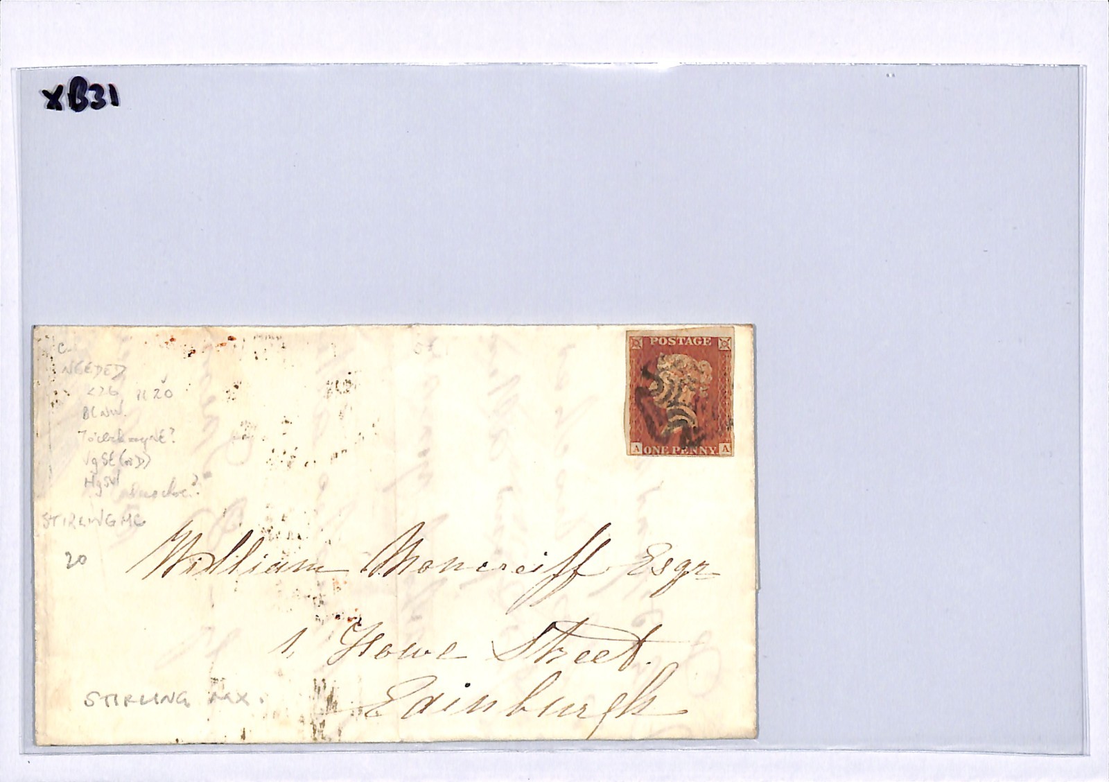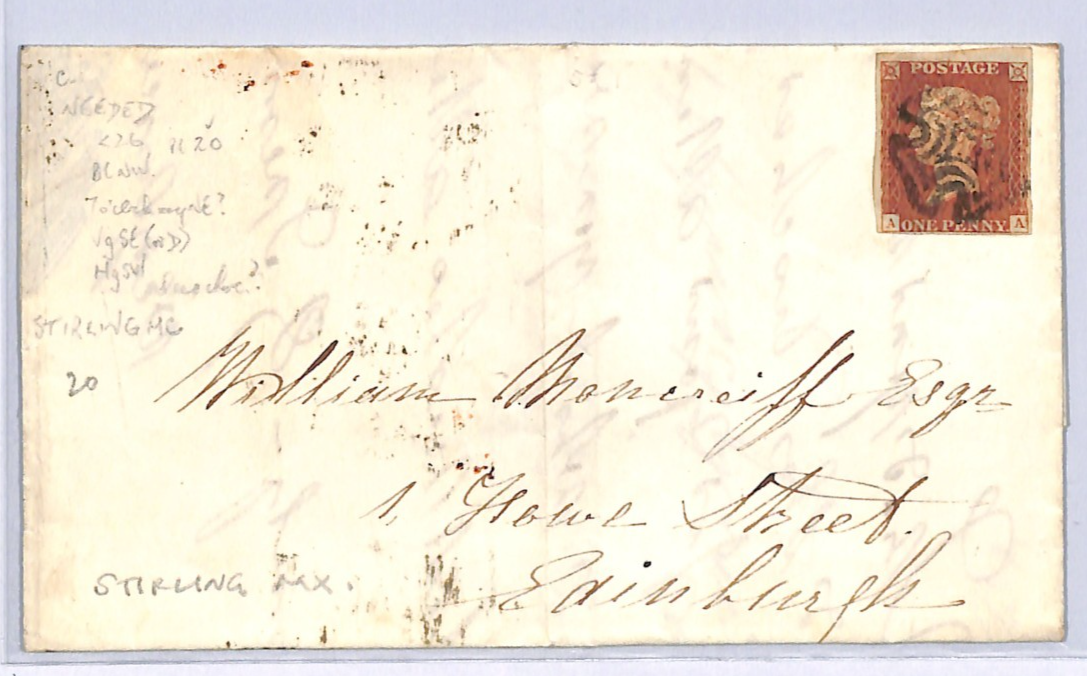 GB Scotland Penny pl20 Red Cover Stirling MX Edinburgh 1842{Samwells-covers}XB31
