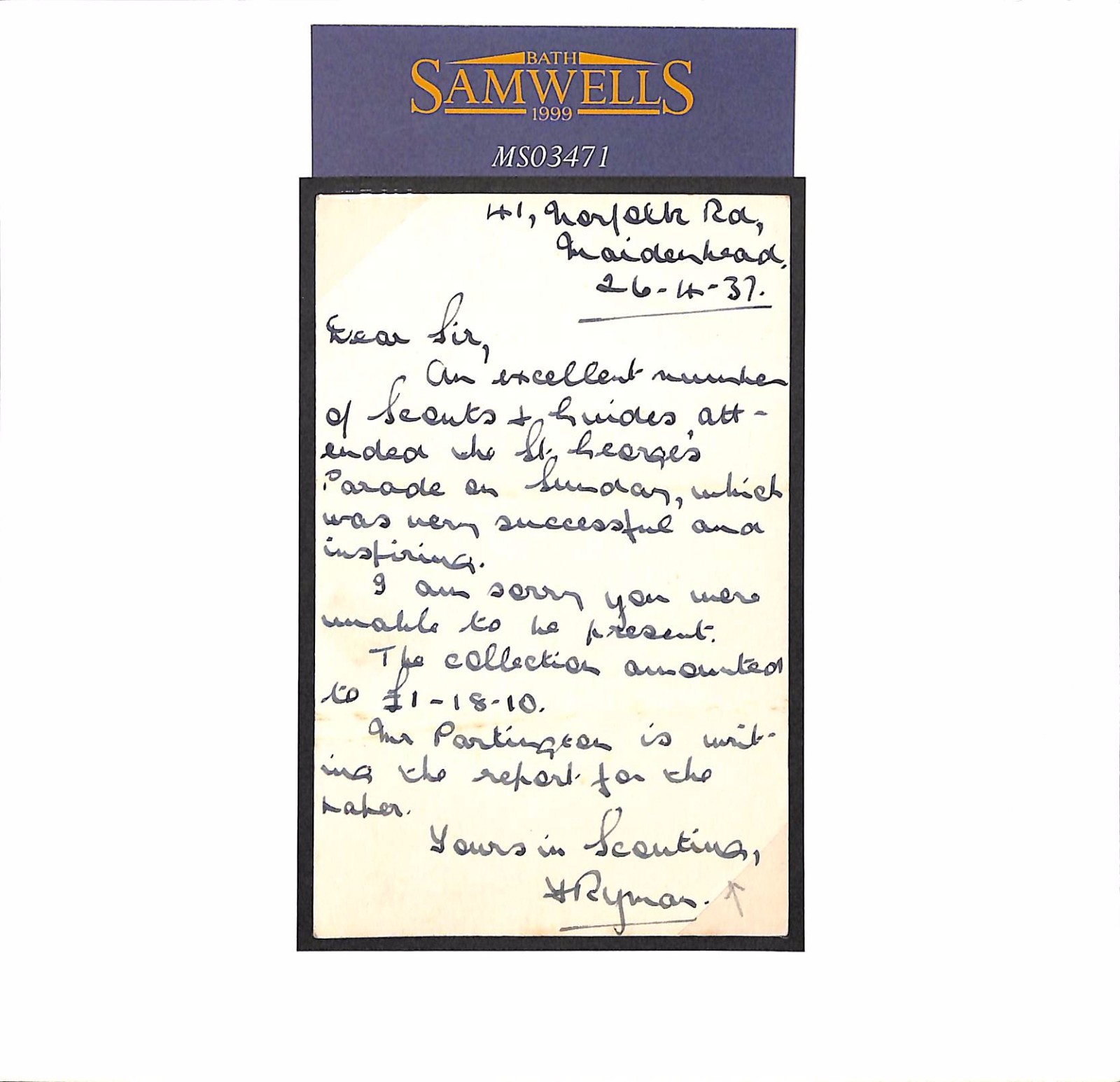 Very fine. EXCELLENT SCOUTING CONTENT re St.George's Day Parade & collection. RARE non-philatelic SCOUTING thematic