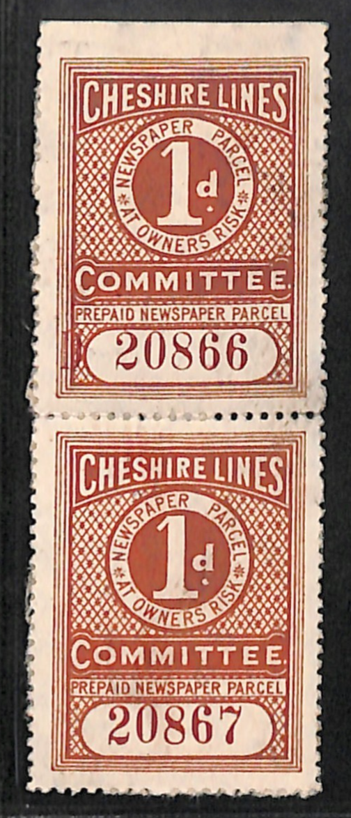 GB CHESHIRE LINES Cttee RAILWAY Newspaper Parcel Stamp Pair 1d *CONTROL D* VS141