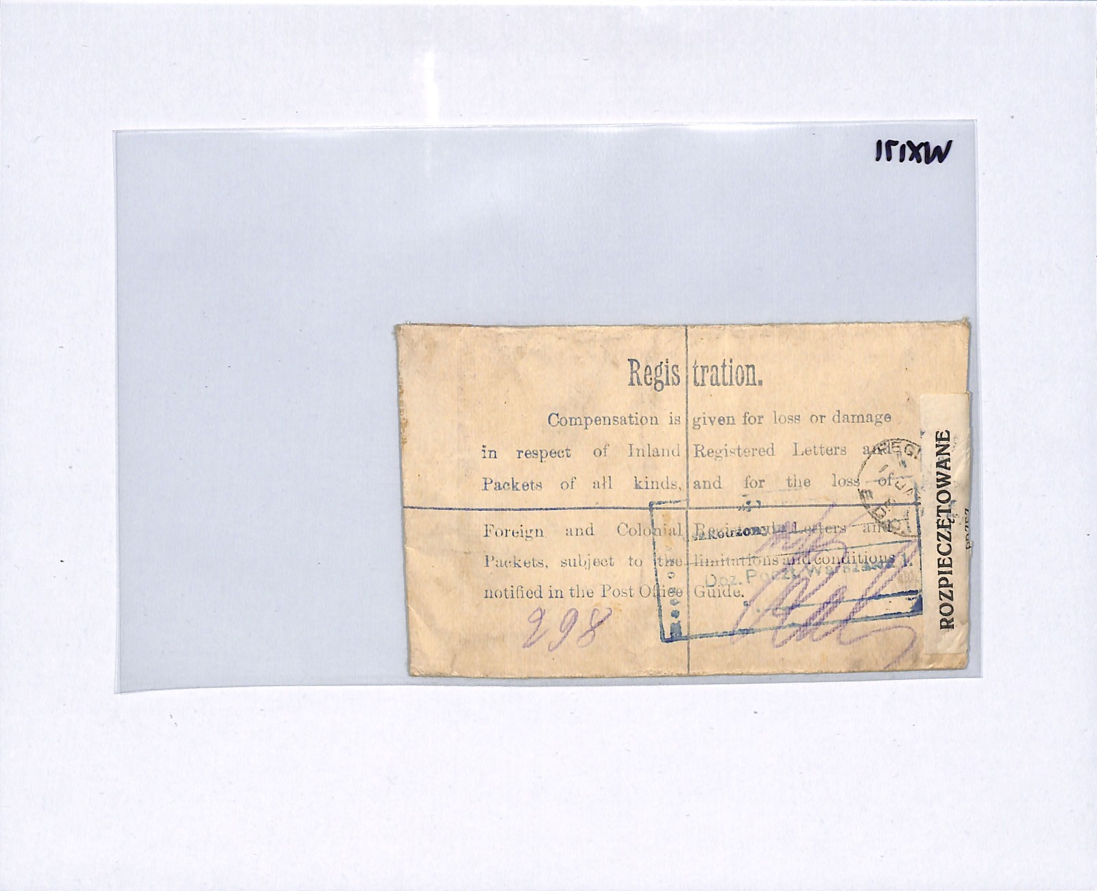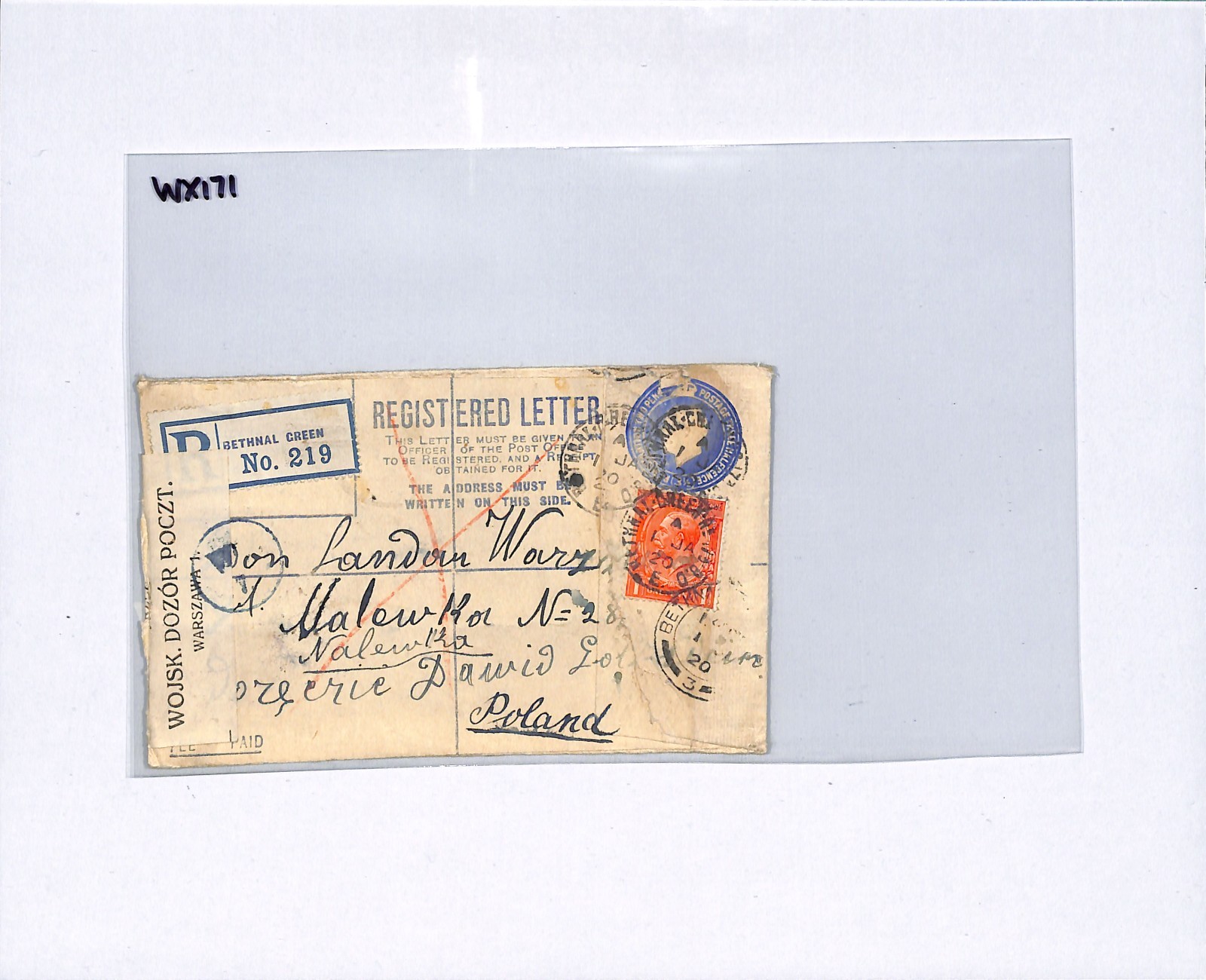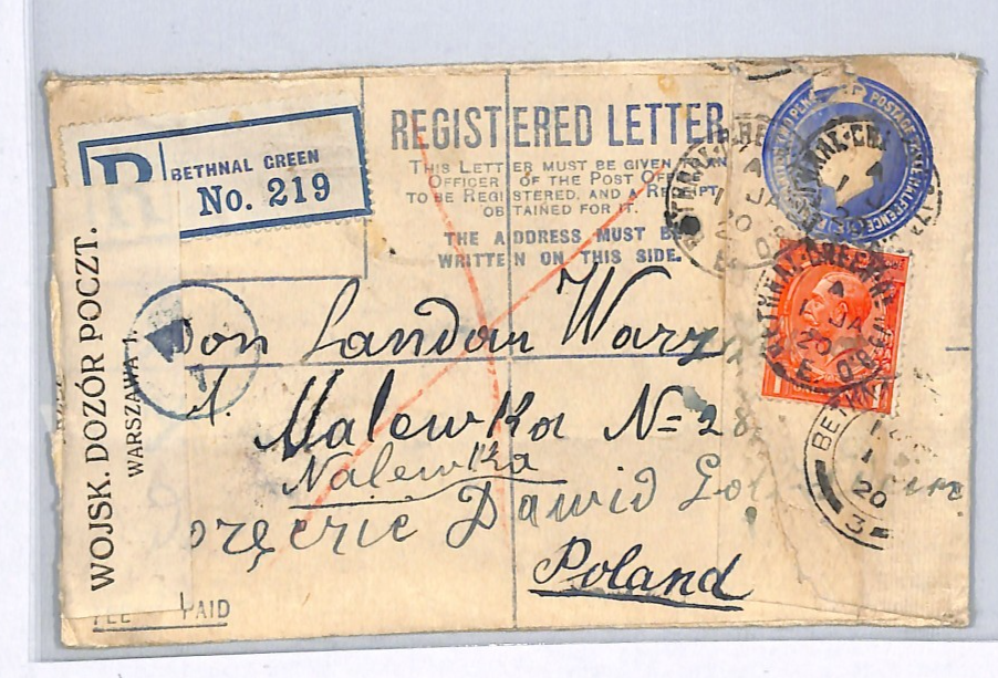 GB Cover London Registered POLAND Warsaw GB Cover London Registered POLAND Warsaw Damaged Explanatory 1920 WX171Explanatory 1920 WX170