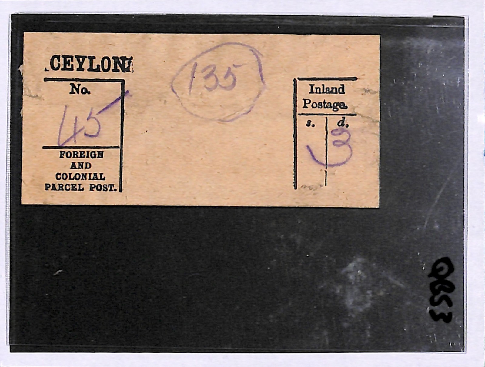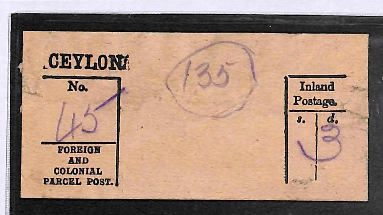 GB FOREIGN & COLONIAL PARCEL POST LABEL *CEYLON* {samwells-covers}QB53