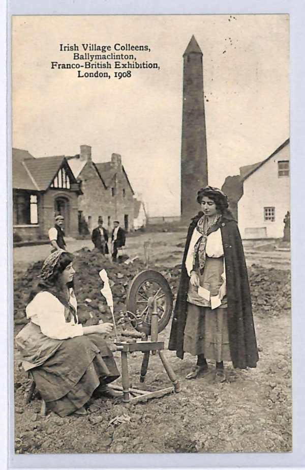 GB FRANCO-BRITISH EXHIBITION Postcard 1908 Label Irish Village PPC{Samwells}WY99