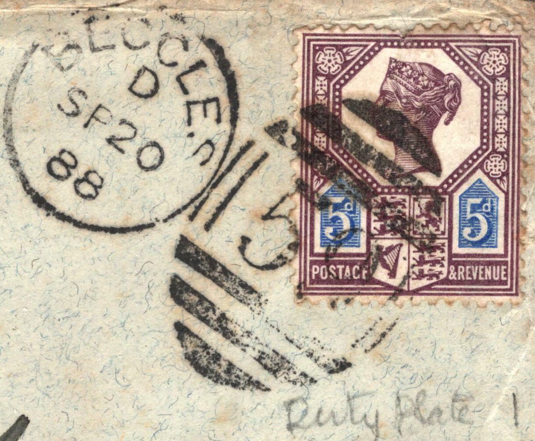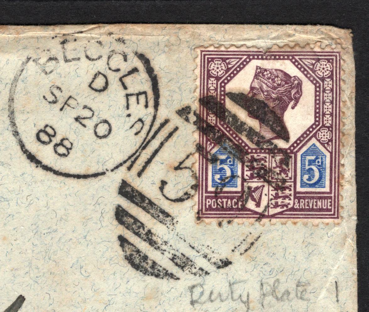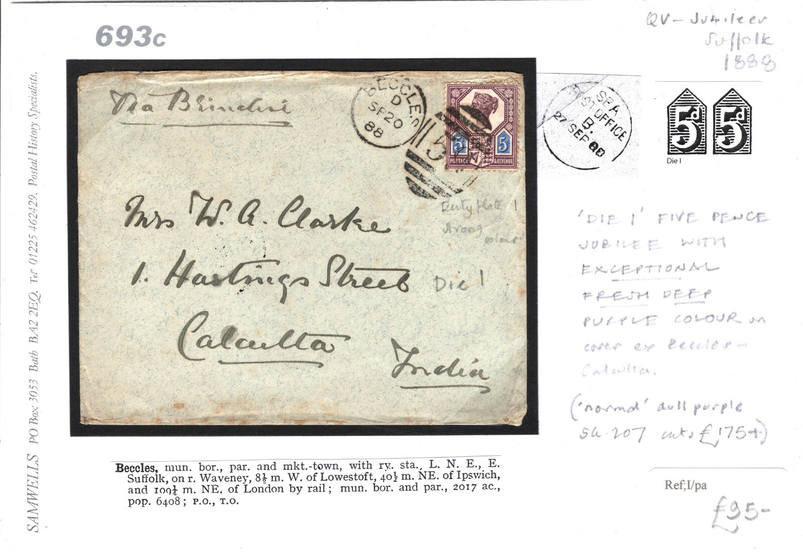 GB INDIA MAIL 1888 Cover QV JUBILEE 5d *DIE 1* Beccles Suffolk SG.207 c£175 693c