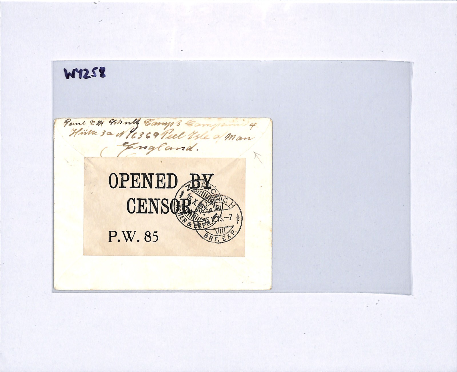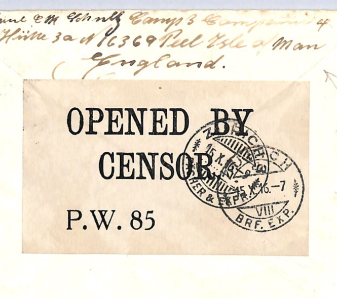 GB IOM Cover WW1 *Peel Camp* ISLE OF MAN POW Mail Censor 1916 Zurich WY258