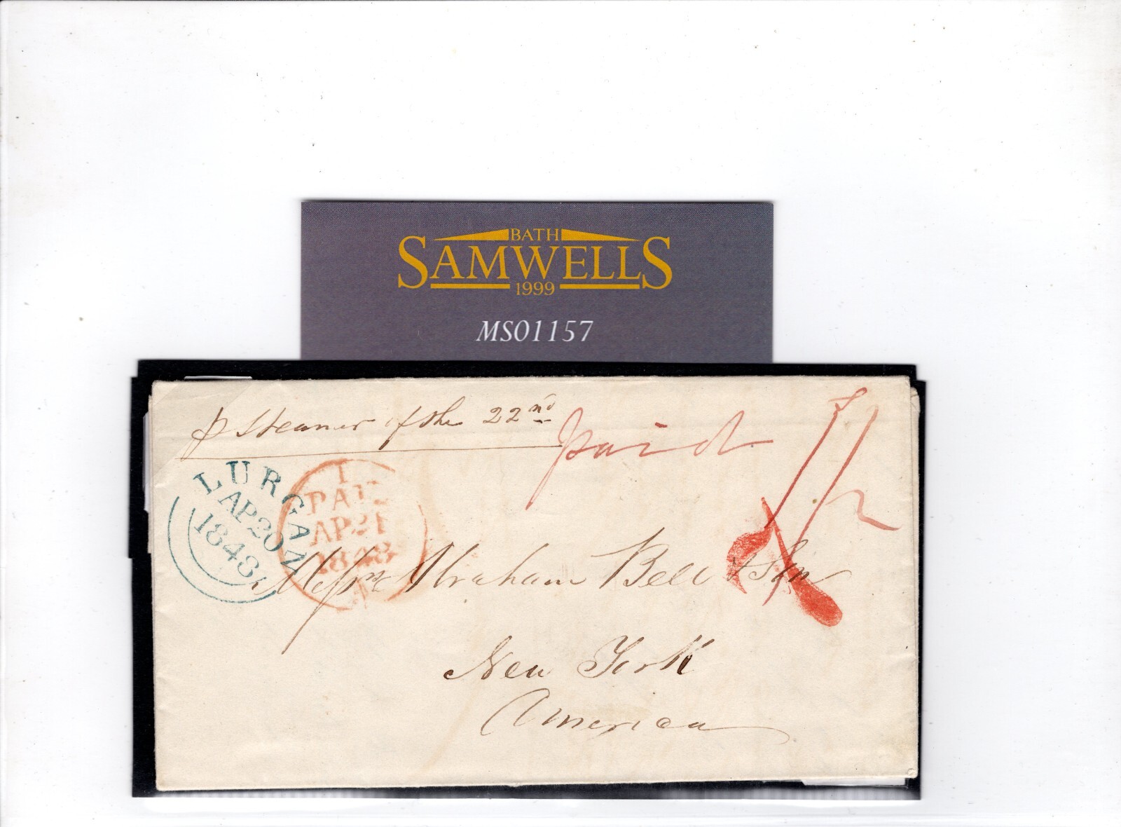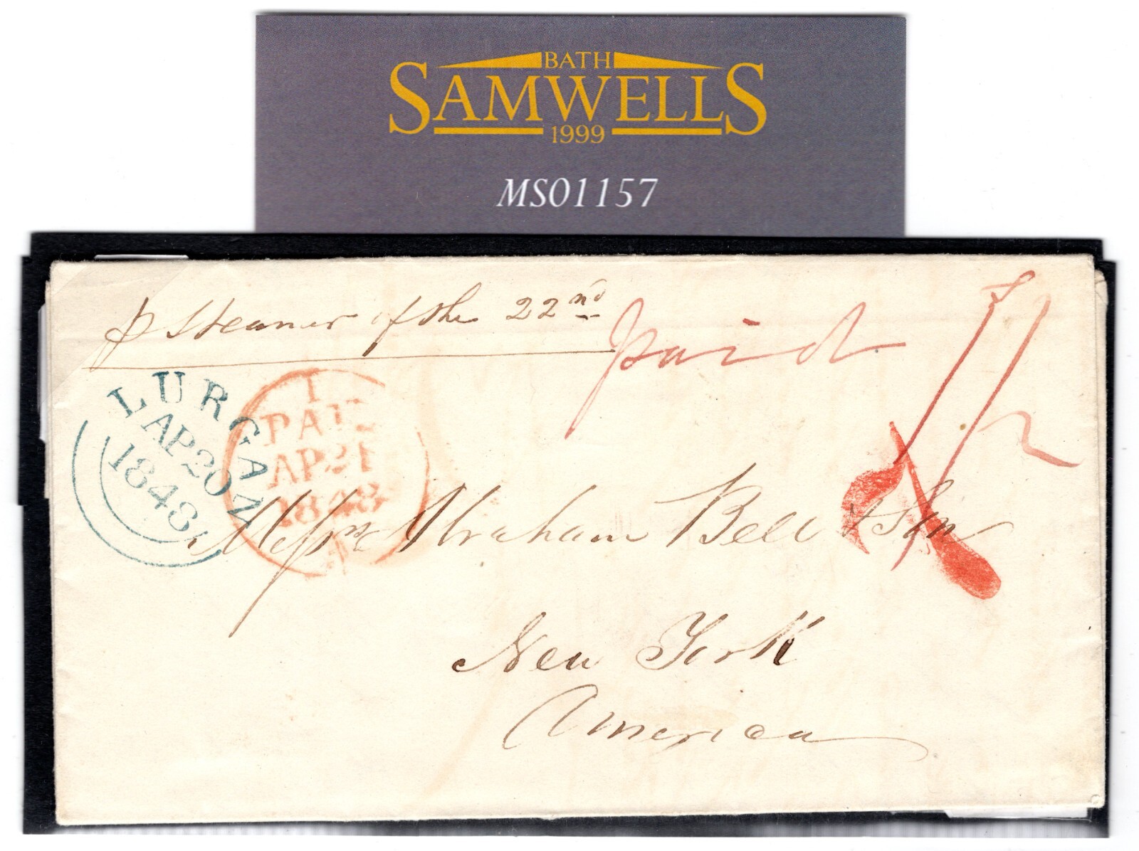 GB IRELAND Armagh TRANSATLANTIC MAIL *Lurgan* 1843 Cover NYC {samwells}MS1157