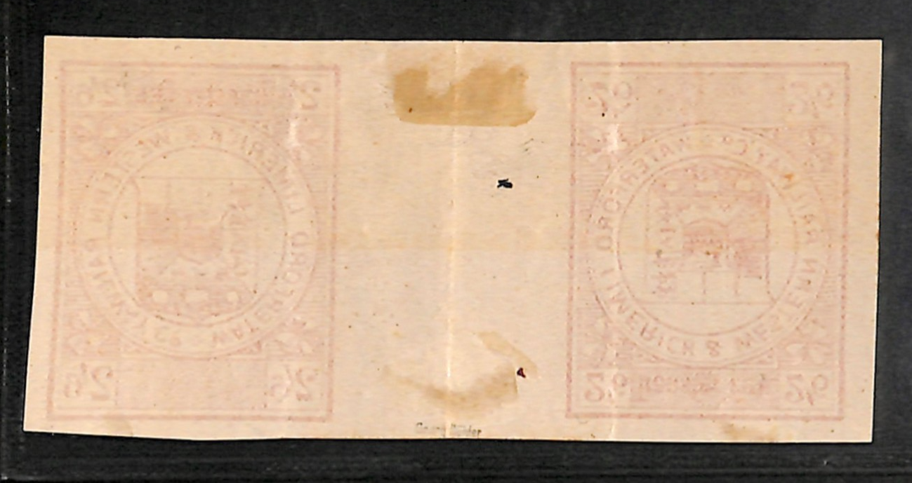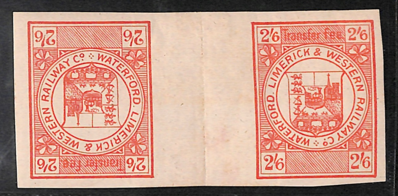 GB Ireland WATERFORD LIMERICK & WESTERN RAILWAY Transfer Fee Parcel Stamp 2s/6d *PROOF* Tete-Beche Interpane Pair {ex Roger de Lacy-Spencer}VS139