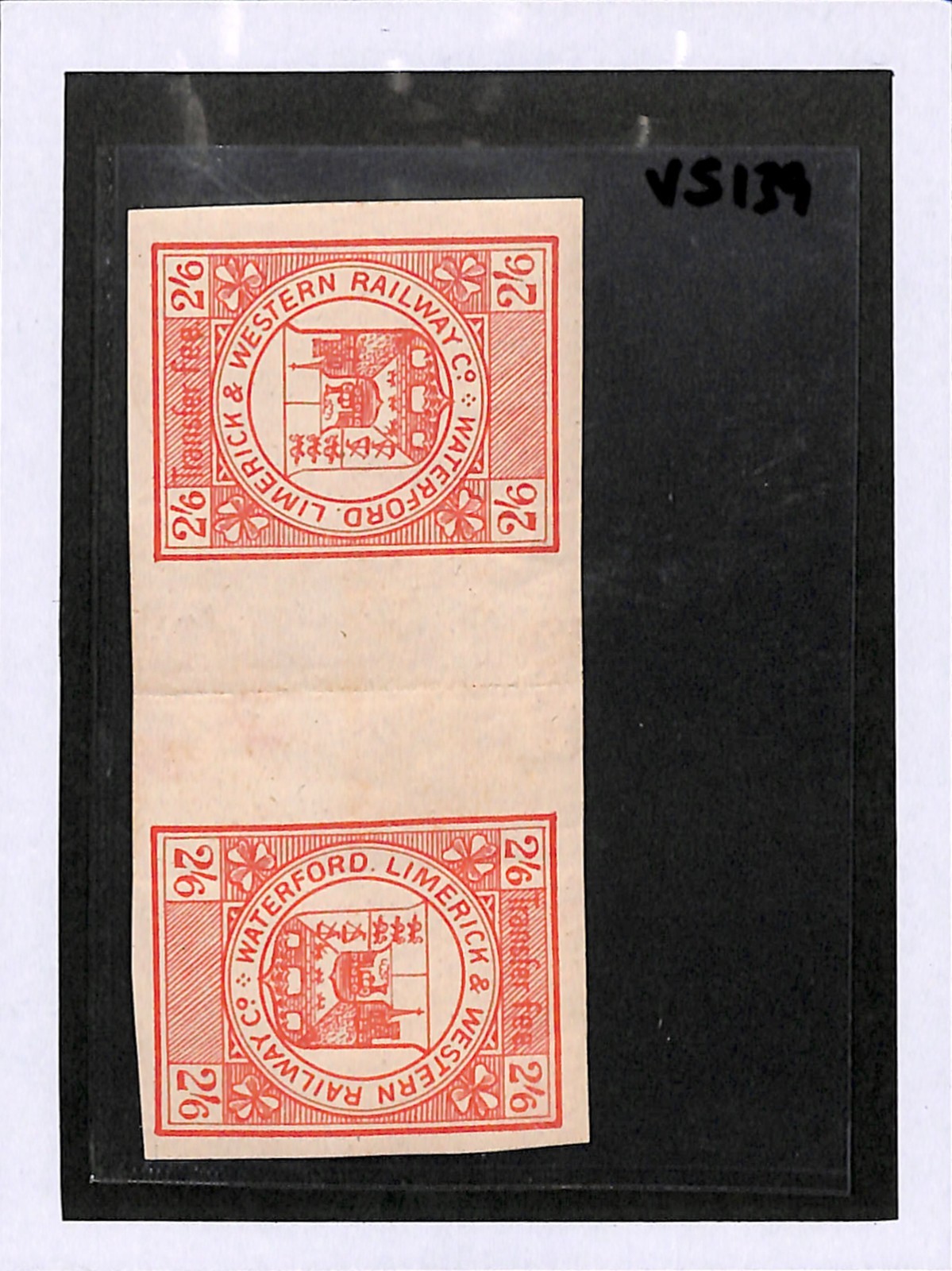 GB Ireland WATERFORD LIMERICK RAILWAY Parcel Stamp 2/6 *PROOF* Tete-Beche VS139