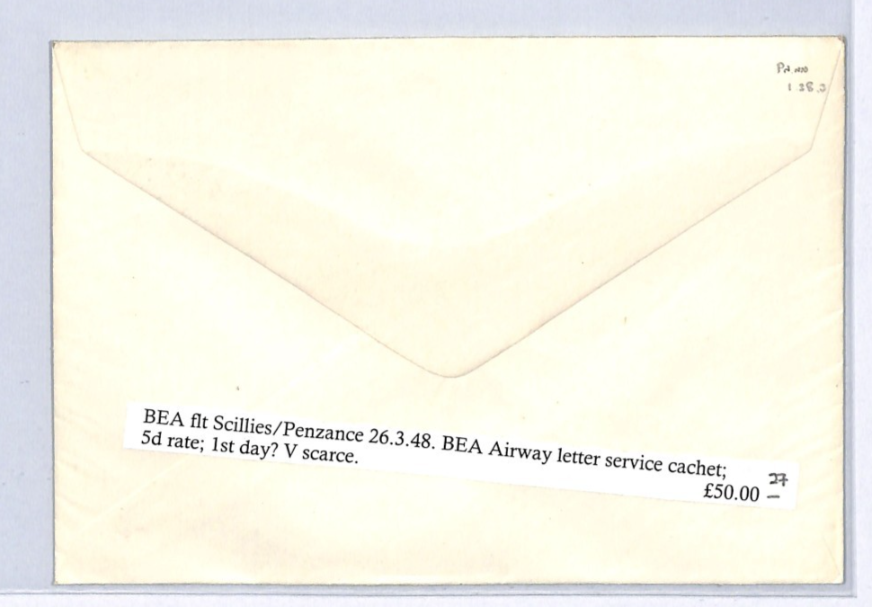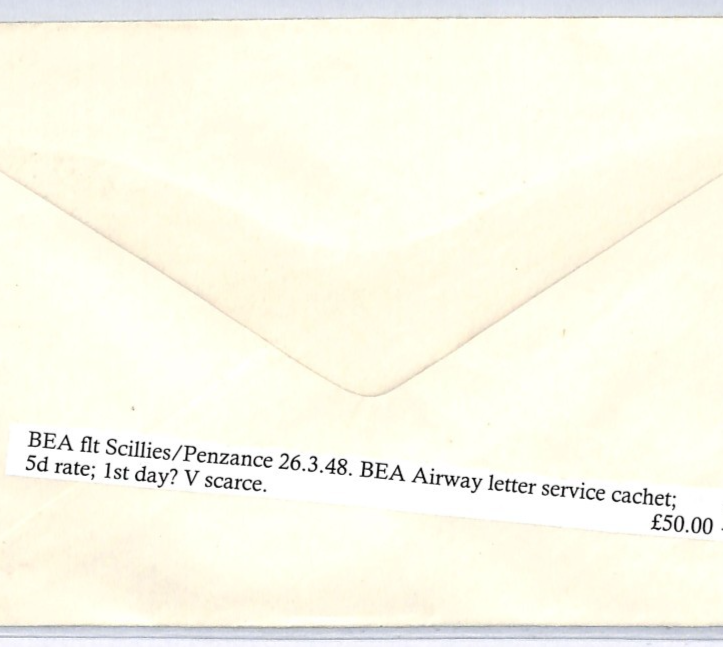 GB *ISLES OF SCILLY* Air Mail 1948 Cover BEA First Flight? IOS-Penzance WY156
