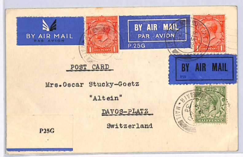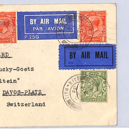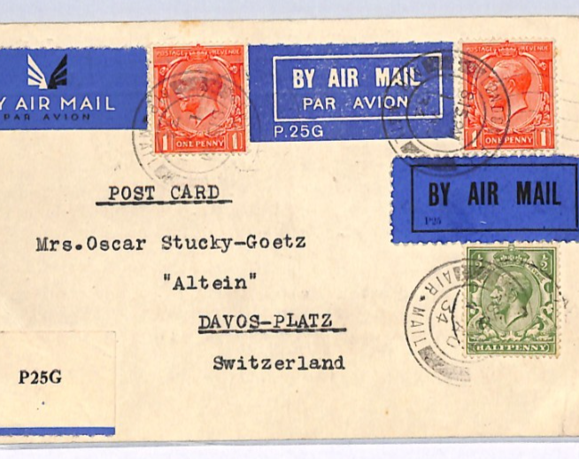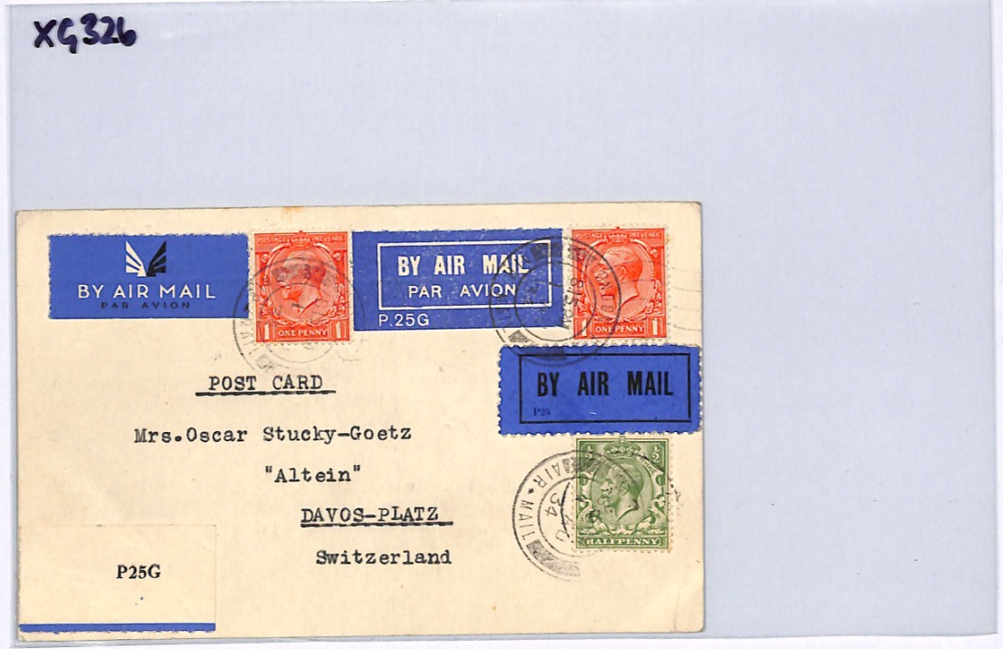 GB KGV AVIATION Cover 1934 Switzerland *THREE DIFFERENT* AIR MAIL Labels XG326
