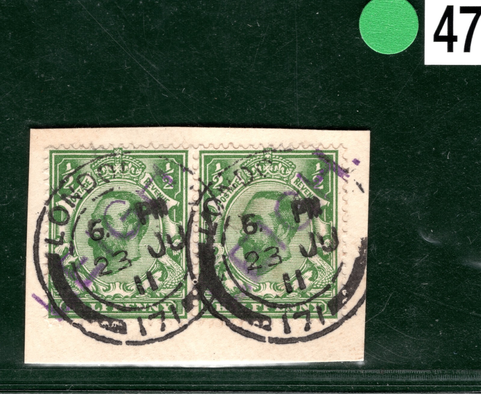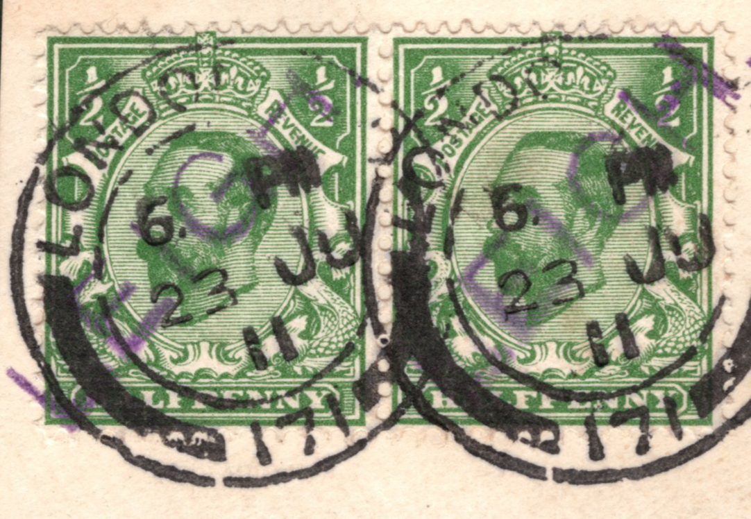 GB KGV Stamp Pair Halfpenny Green *LEIGH* RAILWAY 1911 Used GR2WHITE47