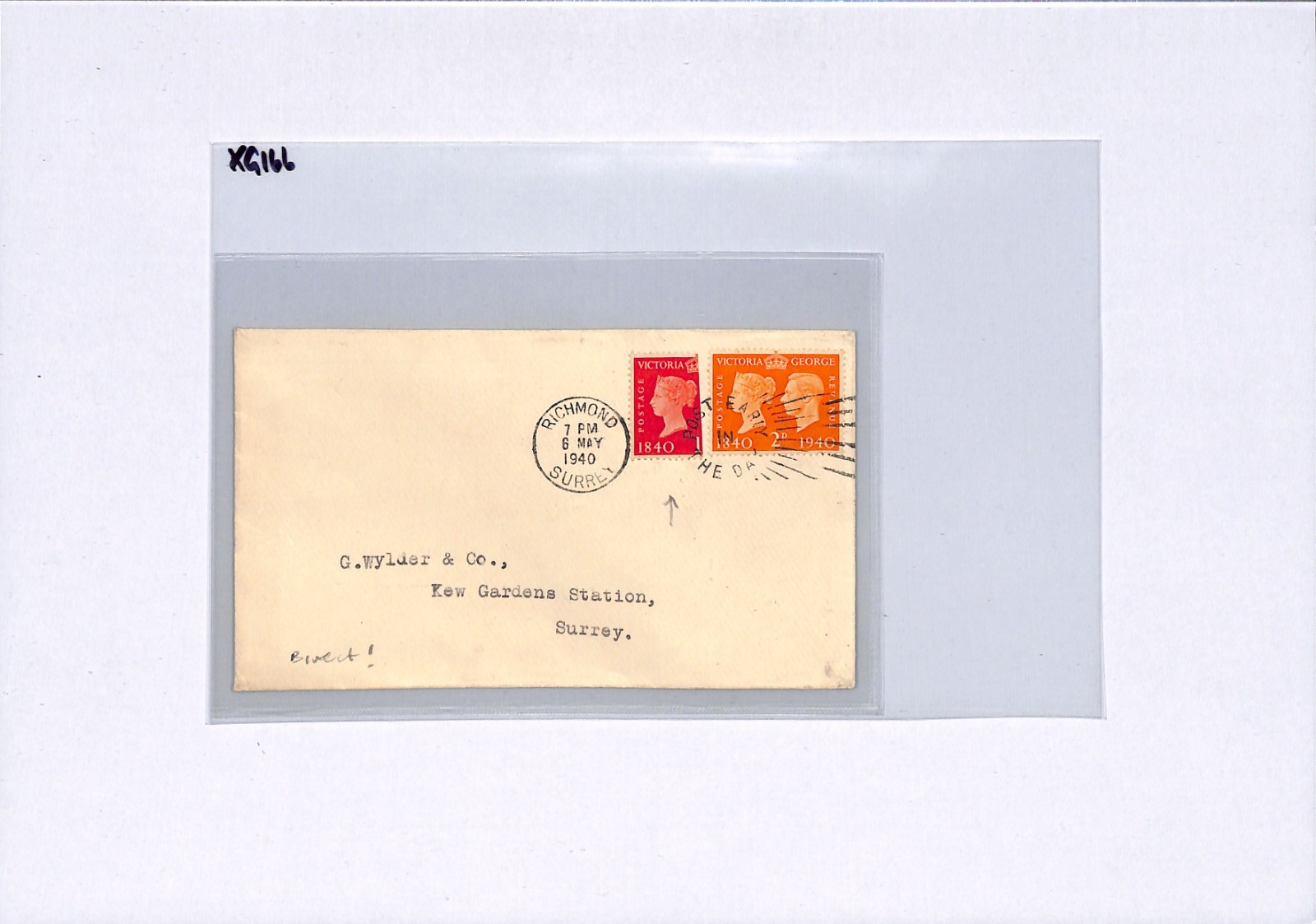 GB KGVI *BISECT* 1940 FDC Surrey Richmond RARE First Day Cover! {samwells}XG166