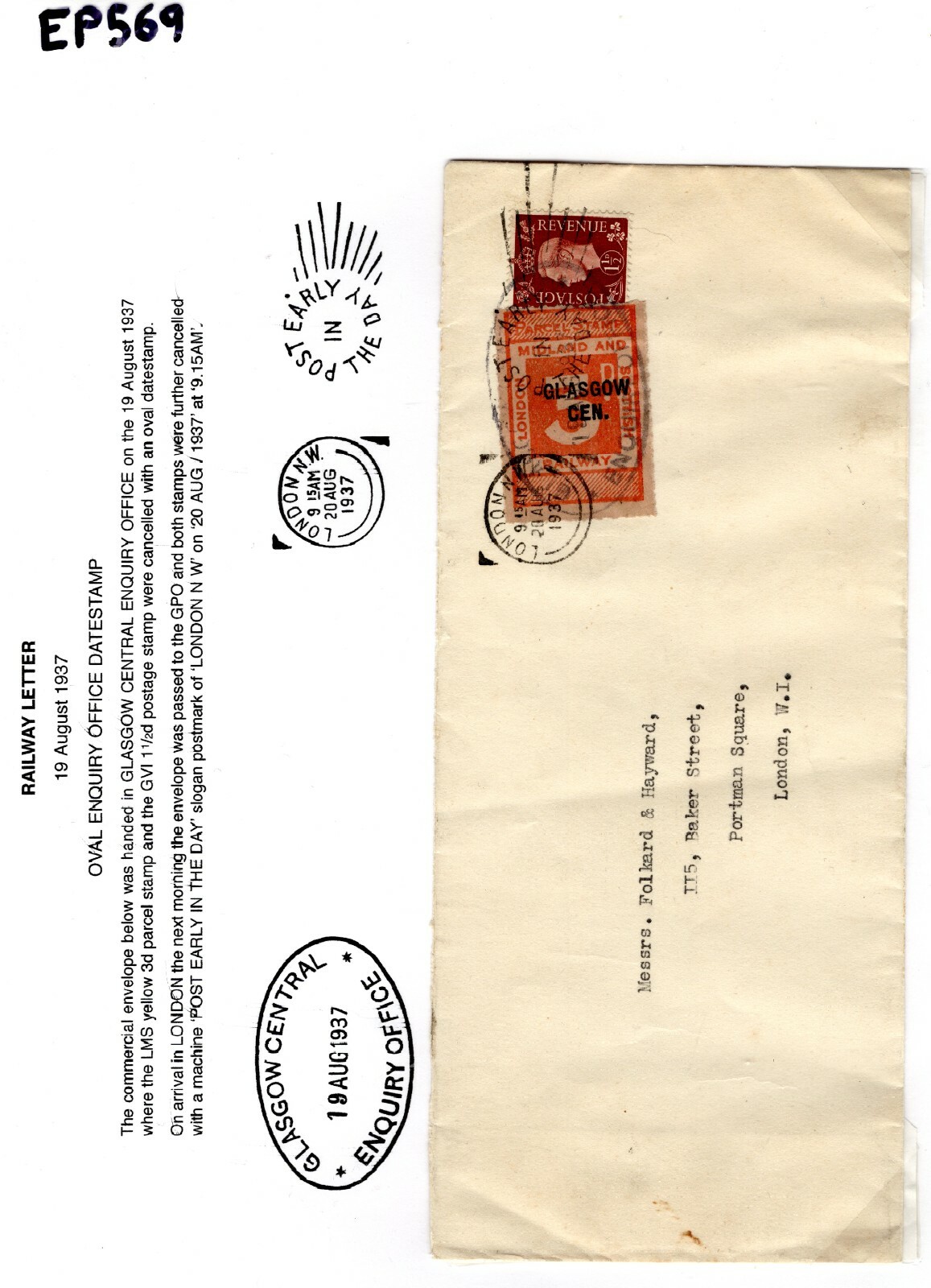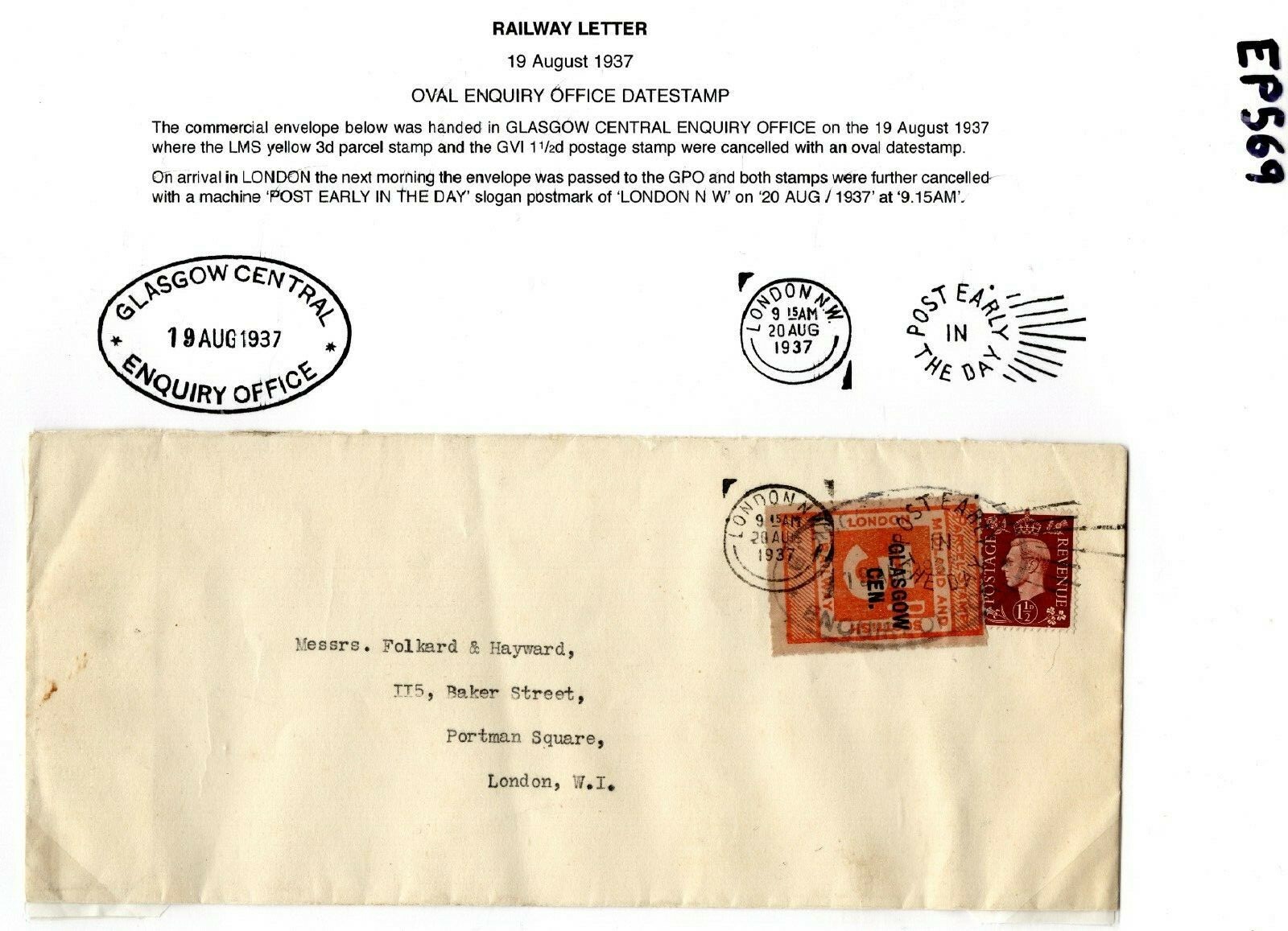 GB KGVI Cover Railway Letter GLASGOW CENTRAL Station Parcel Stamp 1937 Ldn EP569