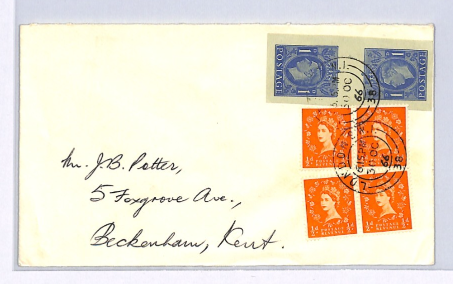 GB KGVI CUT-OUTS Stationery Cover Mixed Reigns London Kent Beckenham 1966 XG247