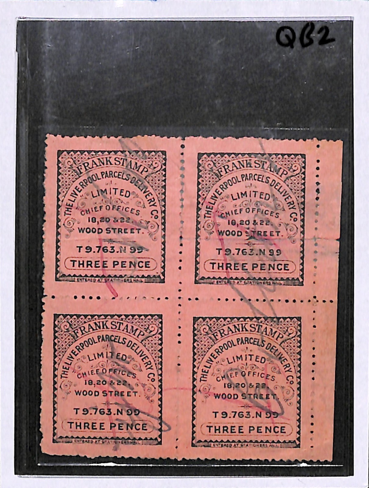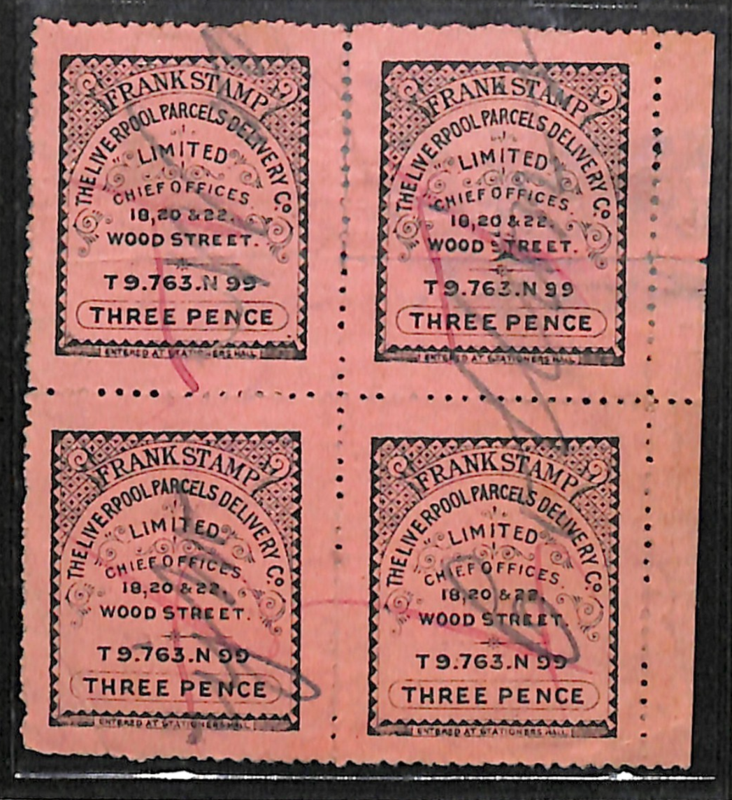 GB Local LIVERPOOL PARCEL DELIVERY Co Frank Stamp BLOCK{4} 3d Used VERY RARE QB2
