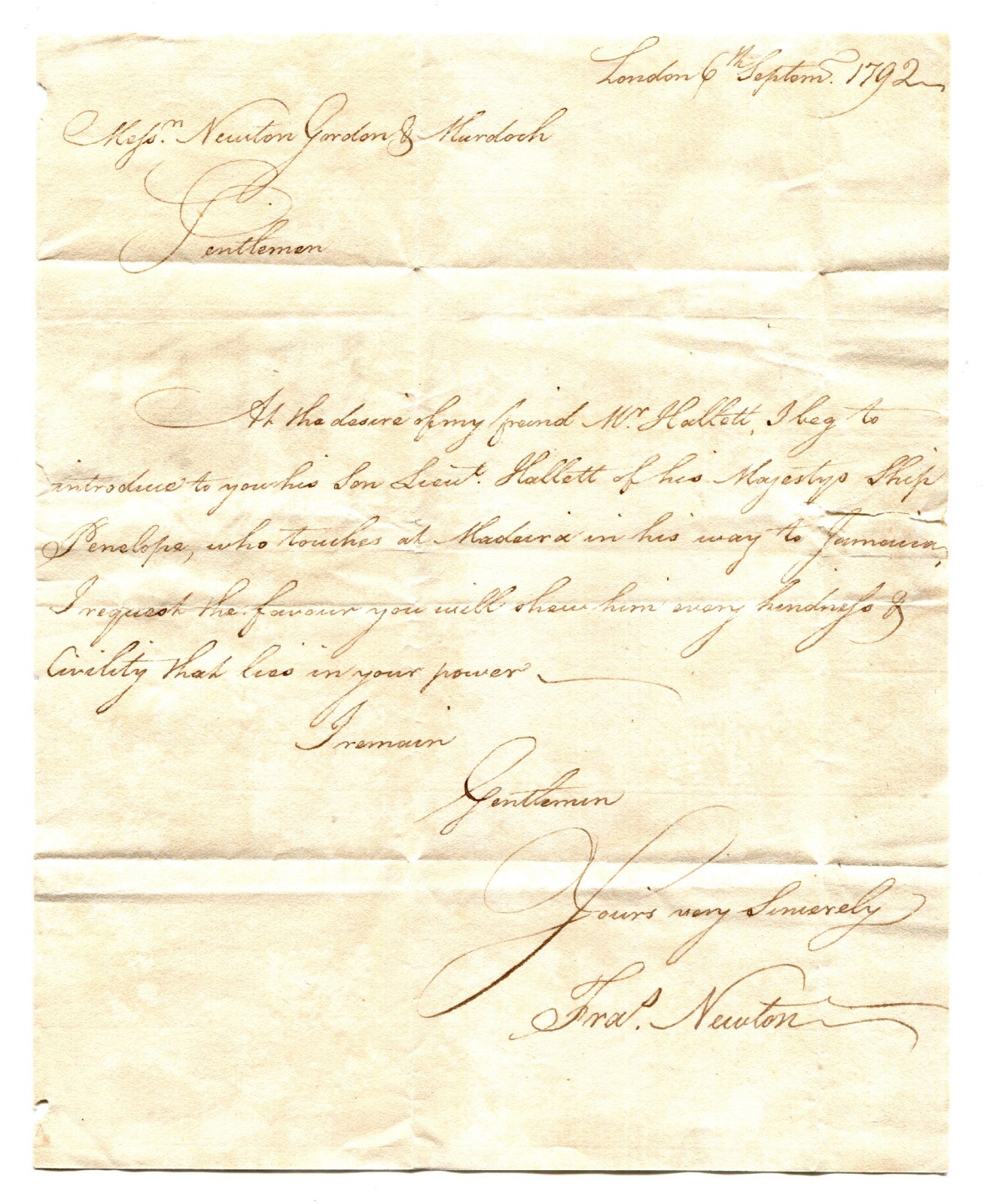 GB MADEIRA Mail London Letter 1792 MARITIME Per Favour NAVAL SHIP Captain/Lieutenant MS2500
