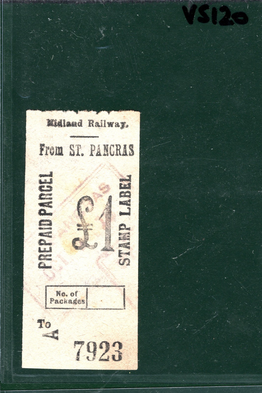 GB MIDLAND RAILWAY Parcel Stamp £1 ST PANCRAS STATION Used VS120