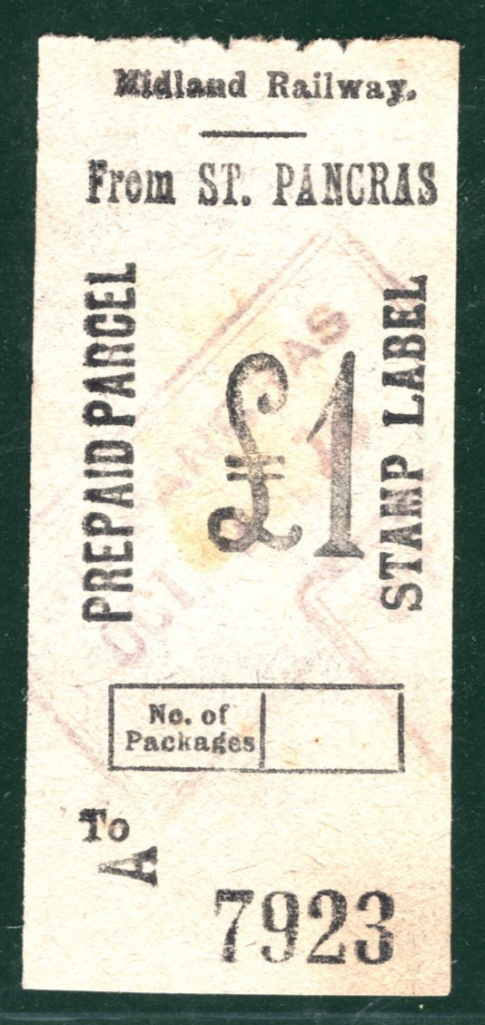 GB MIDLAND RAILWAY Parcel Stamp £1 *HIGH VALUE* St Pancras Station Used VS120