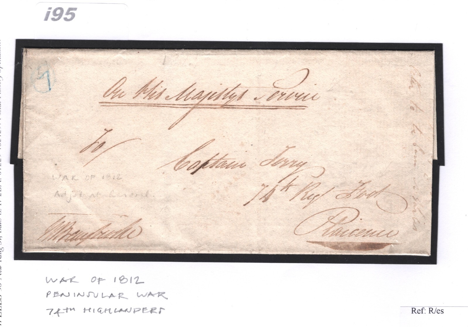 GB MILITARY Cover 1812 *PENINSULAR WAR* 74th HIGHLANDERS REGT. Entire Letter i95