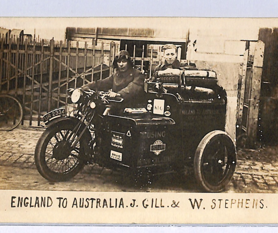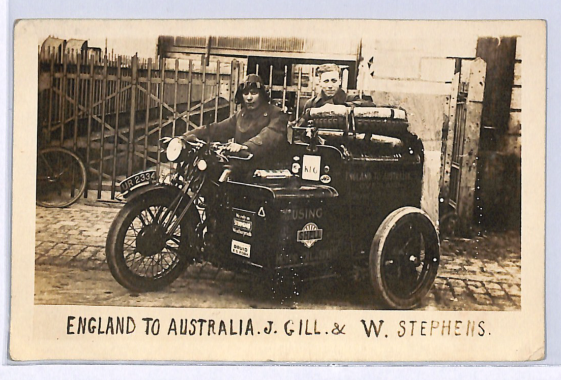 GB MOTORBIKE Postcard Gill & Stephens *ENGLAND-AUSTRALIA* Endurance Trip WQ92