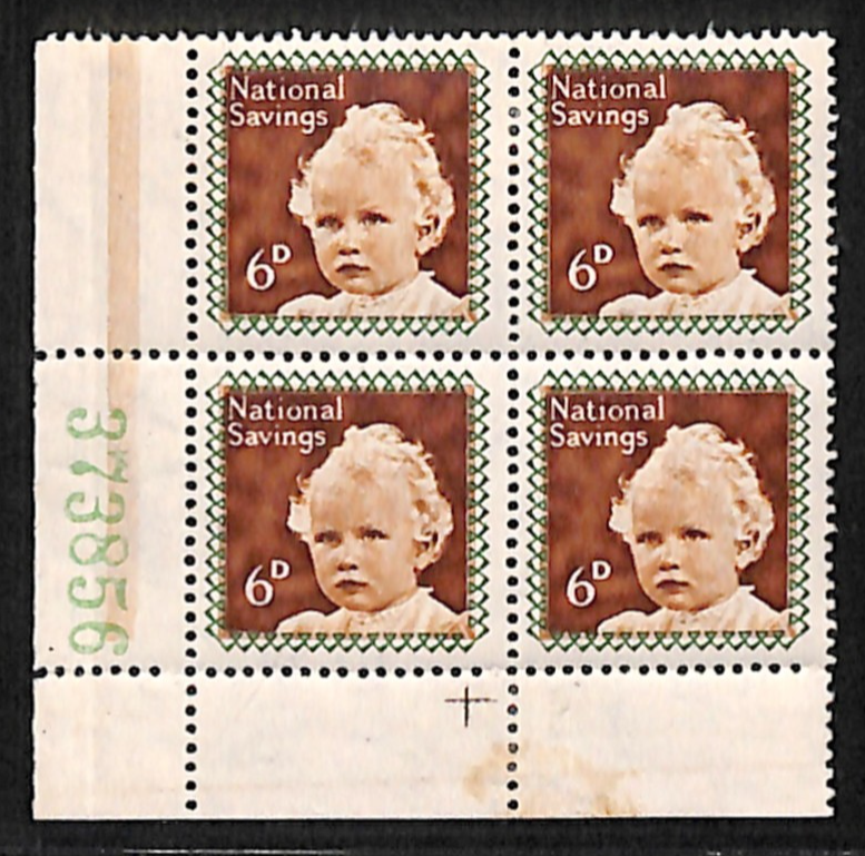 GB NATIONAL SAVINGS Stamp 6d Corner Block{4} Mint *PRINCESS ANNE* Royalty VS165