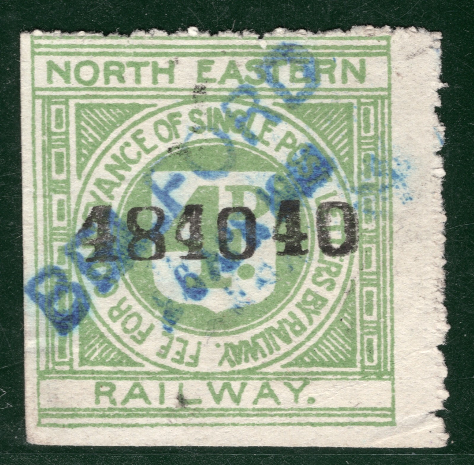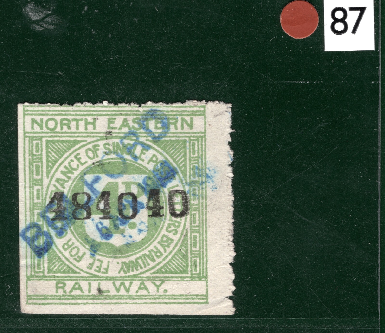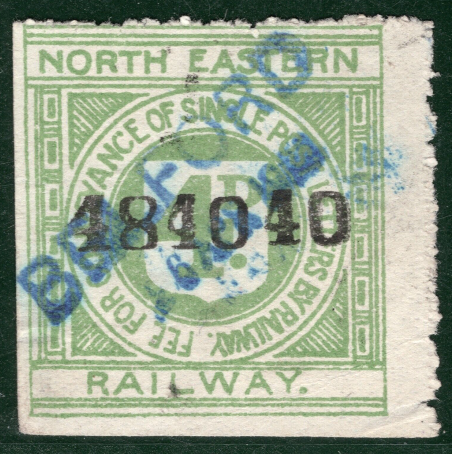 GB NER RAILWAY Letter Stamp 4d Green (1921) BLUE *BELFORD* STATION Northumberland RARE Used BRW87