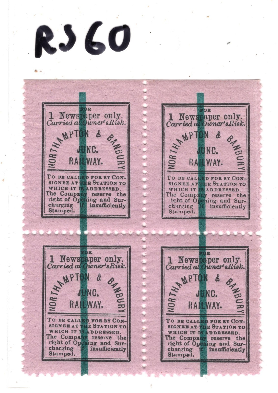 GB NORTHAMPTON & BANBURY JUNCTION RAILWAY Newspaper Stamp Block{4} Mint MM RS60