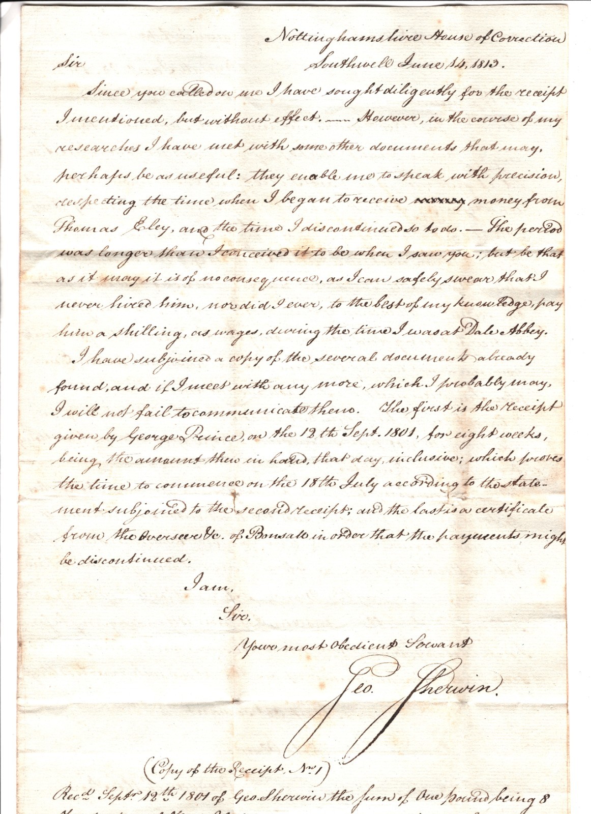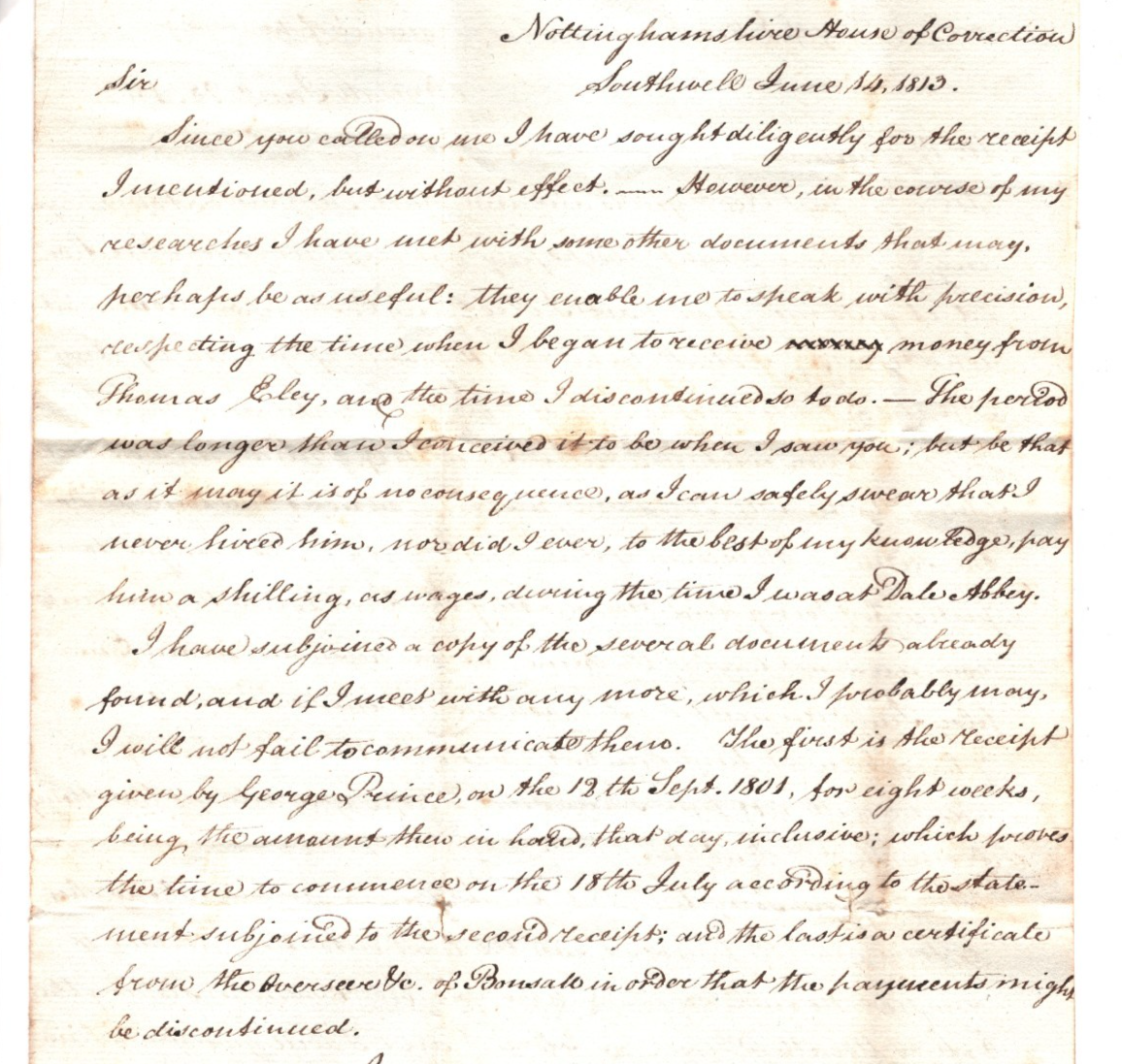 RARE ORIGIN. Entire Letter clearly headed *NOTTINGHAMSHIRE HOUSE OF CORRECTION*. Overall VG/Fine for an item of this type & period. Please look at all the scans to help form your own opinion (WAF).