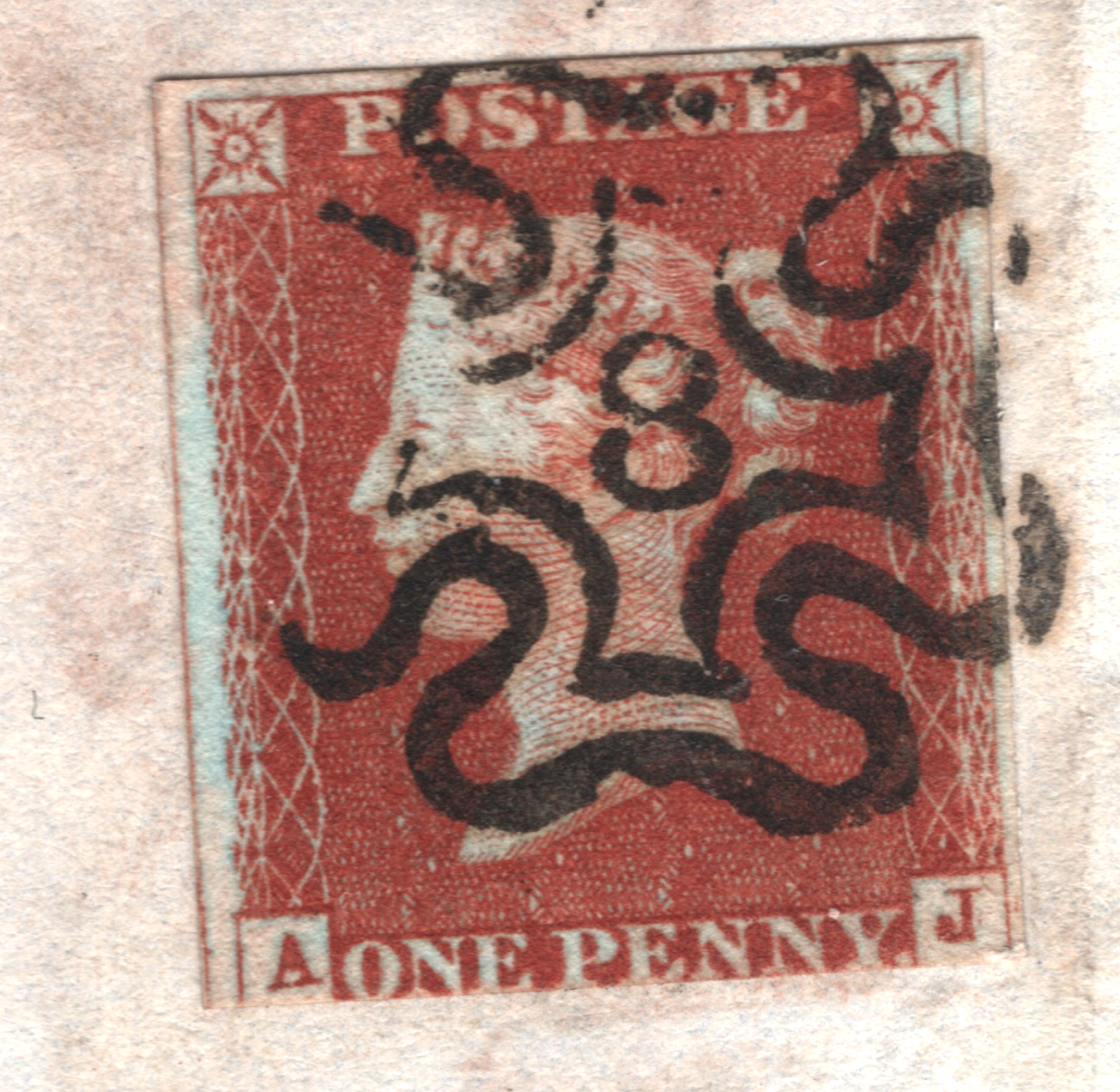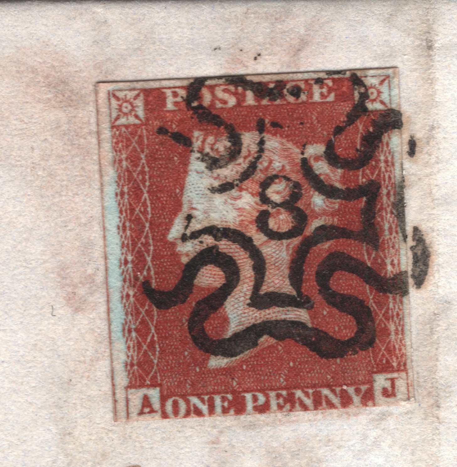 GB NUMBER *8* MALTESE CROSS Cover 1d (AJ) Penny Red 1844 Wales Cat £450- XB21