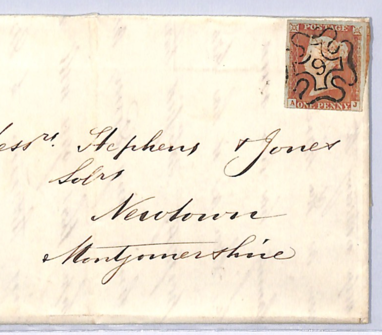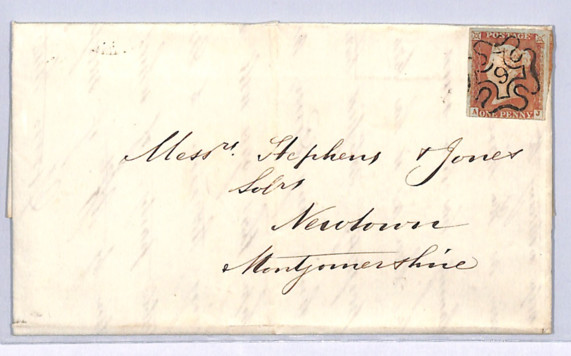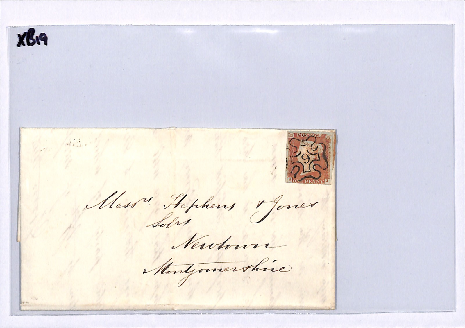 GB Wales Penny Red Cover MX *9* NUMERAL Newtown EL Montgomeryshire 1843 XB19