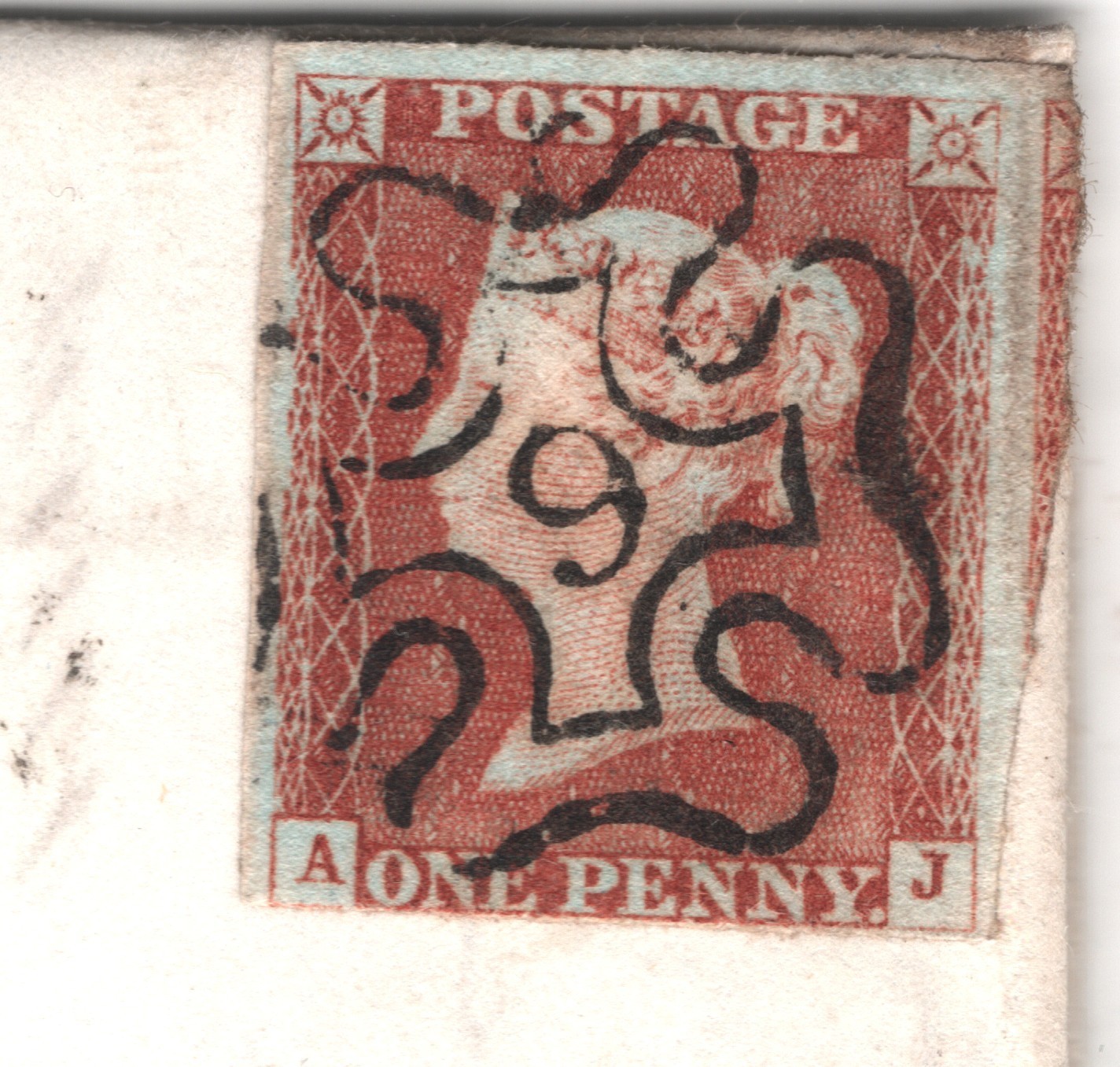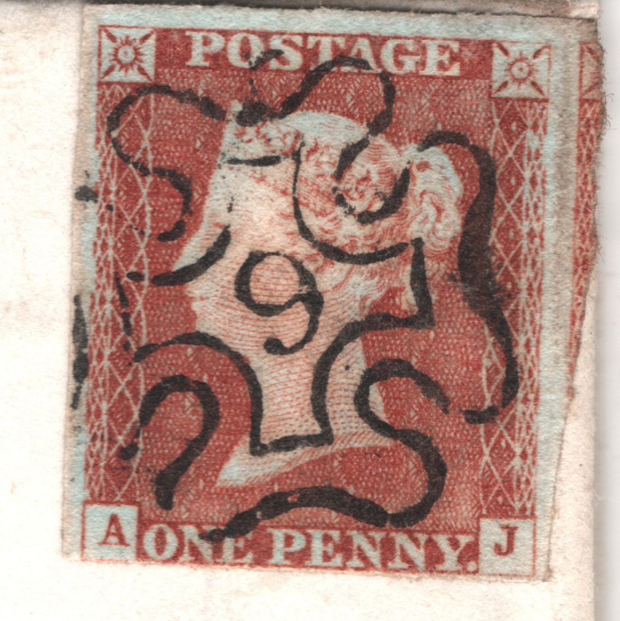 GB NUMBER *9* MALTESE CROSS Cover 1d (AJ) Penny Red 1843 Montgomerys XB19
