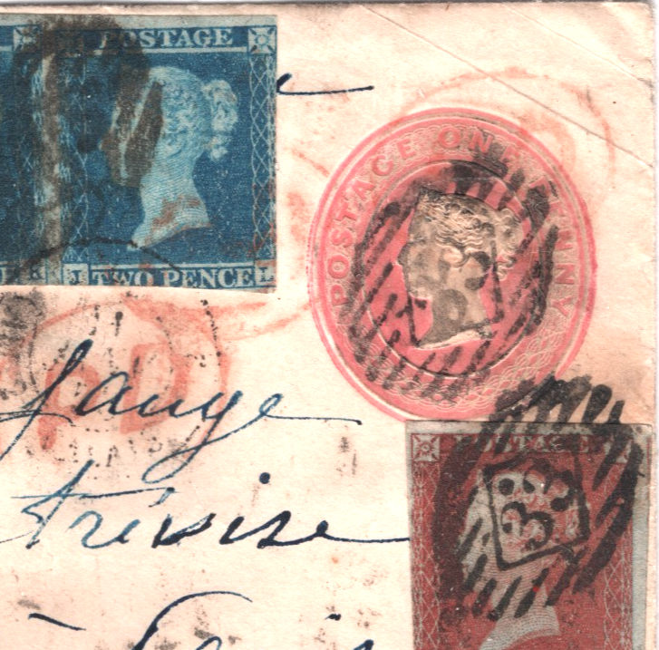 MOST UNUSUAL THREEE COLOUR MIXED FRANKING for 10d Rate mail to France. Overall Fine for an item of this type & period. Please look at all the scans to help form your own opinion (WAF).